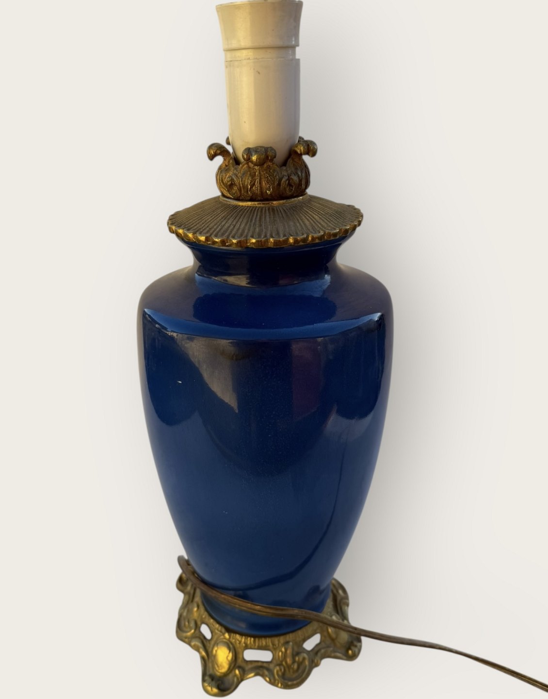 Beskrivelse: Stor bordlampe med flyvende fugl i porcelæn og messing, højde med fatning 39cm *Enkelte småkrakeleringer under glasuren (se foto) ellers flot stand