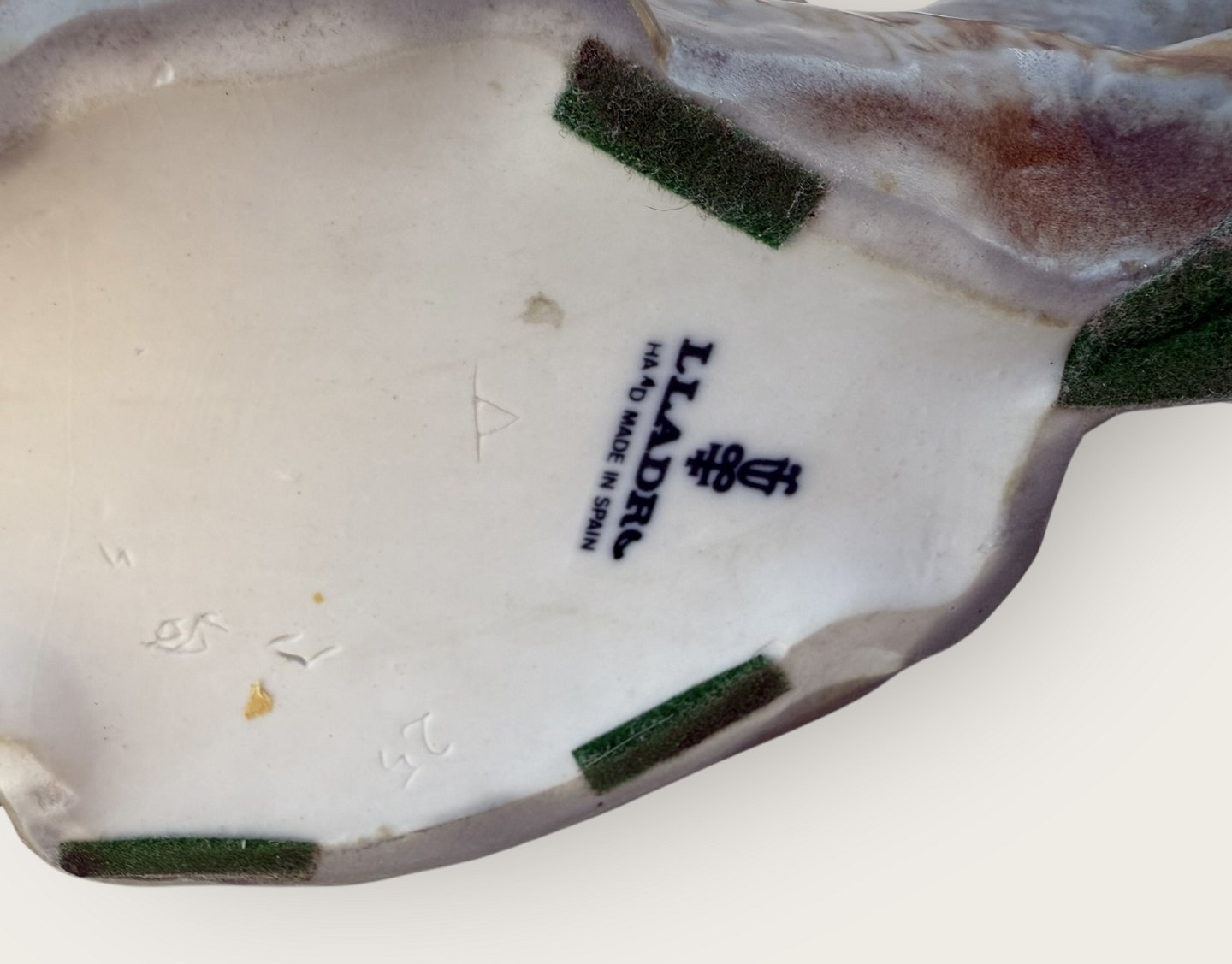 Beskrivelse: Stor Lladro figur, Spanien, Liggende kat i brun / Grøn glasur, 41cm lang *Fin stand*