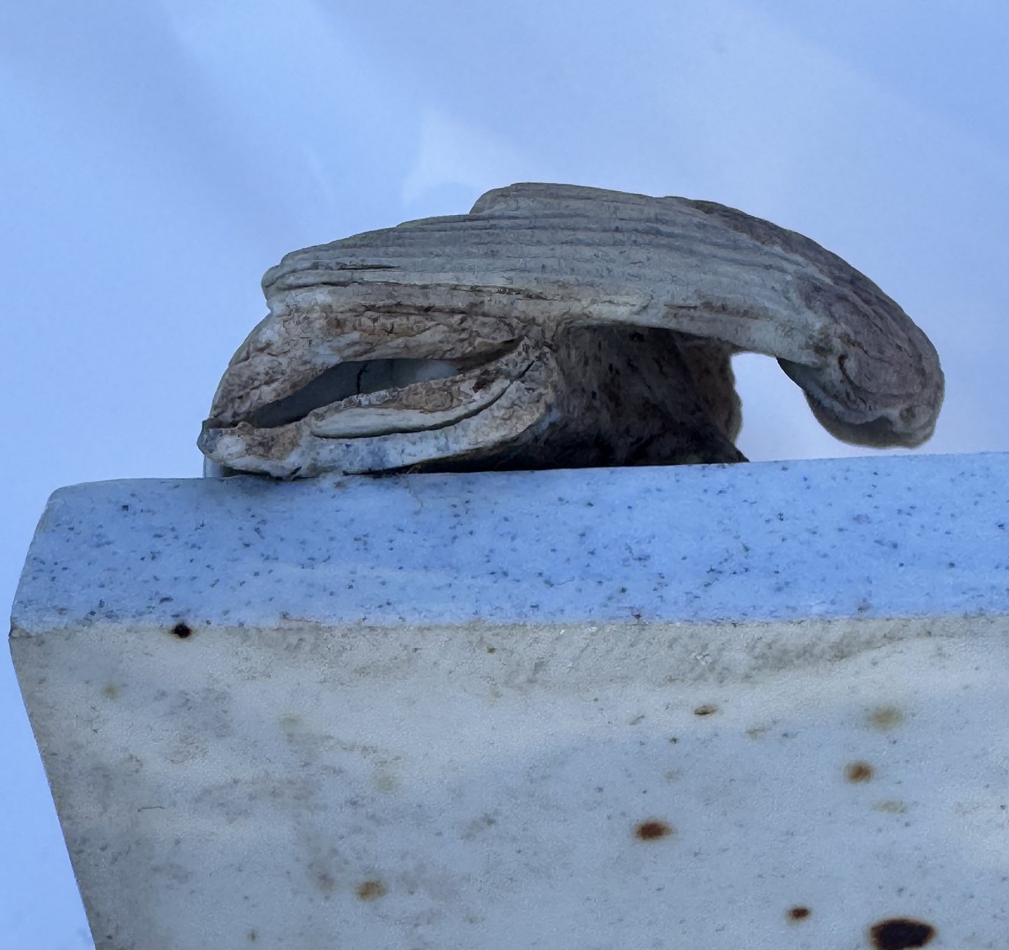Beskrivelse: Figur i bemalet bisquit porcelæn forestillende Ganymedes med Jupiter’s (Zeus’ i følge den græske mytologi) ørn af Bertel Thorvaldsen (1770-1844) Formgivet i Rom 1817-18. Denne reproduktion er fra Royal Copenhagen fremstillet i slutningen af 19. århundrede. Ifølge den græske mytologi bortfører Zeus’ (Jupiter) ørn Ganymedes for at for at gøre ham til gudernes mundskænk (tjener). Fabriksmærket på bunden med fabrikkens velkendte tre blå bølger. Figuren mangler Ganymedes’ kande i højre hånd, ligesom der er et mindre afslag på ørnens hale. Mål: H. 11 cm. Basen måler 6 x 12,5 cm.