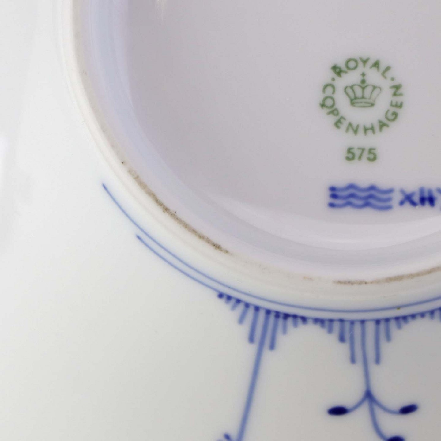 Beskrivelse: Morgenskål i kongeligt porcelæn fra stellet Blå Elements. Nr. 575