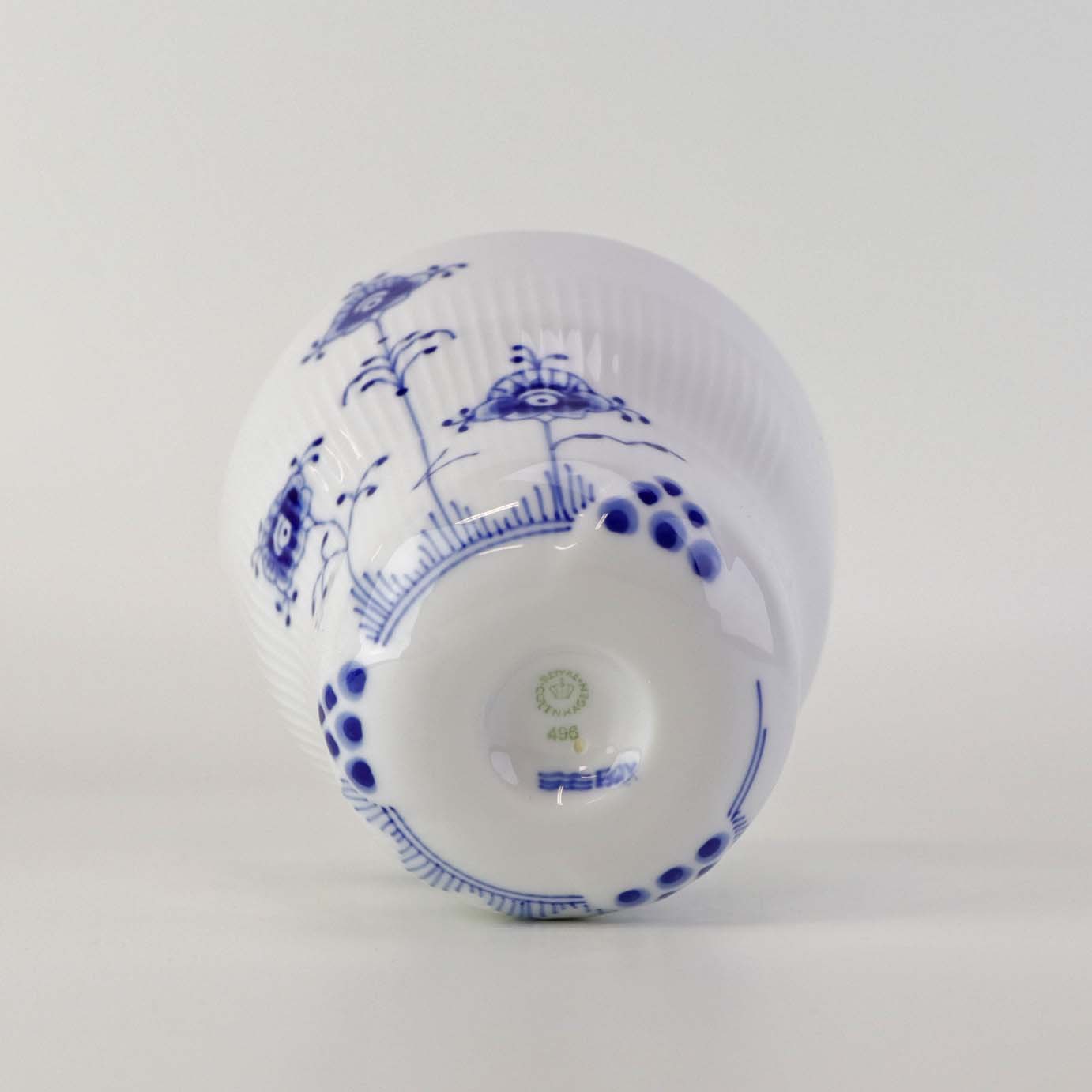 Beskrivelse: Termokop i kongeligt porcelæn fra stellet Blå Elements. Nr. 496
