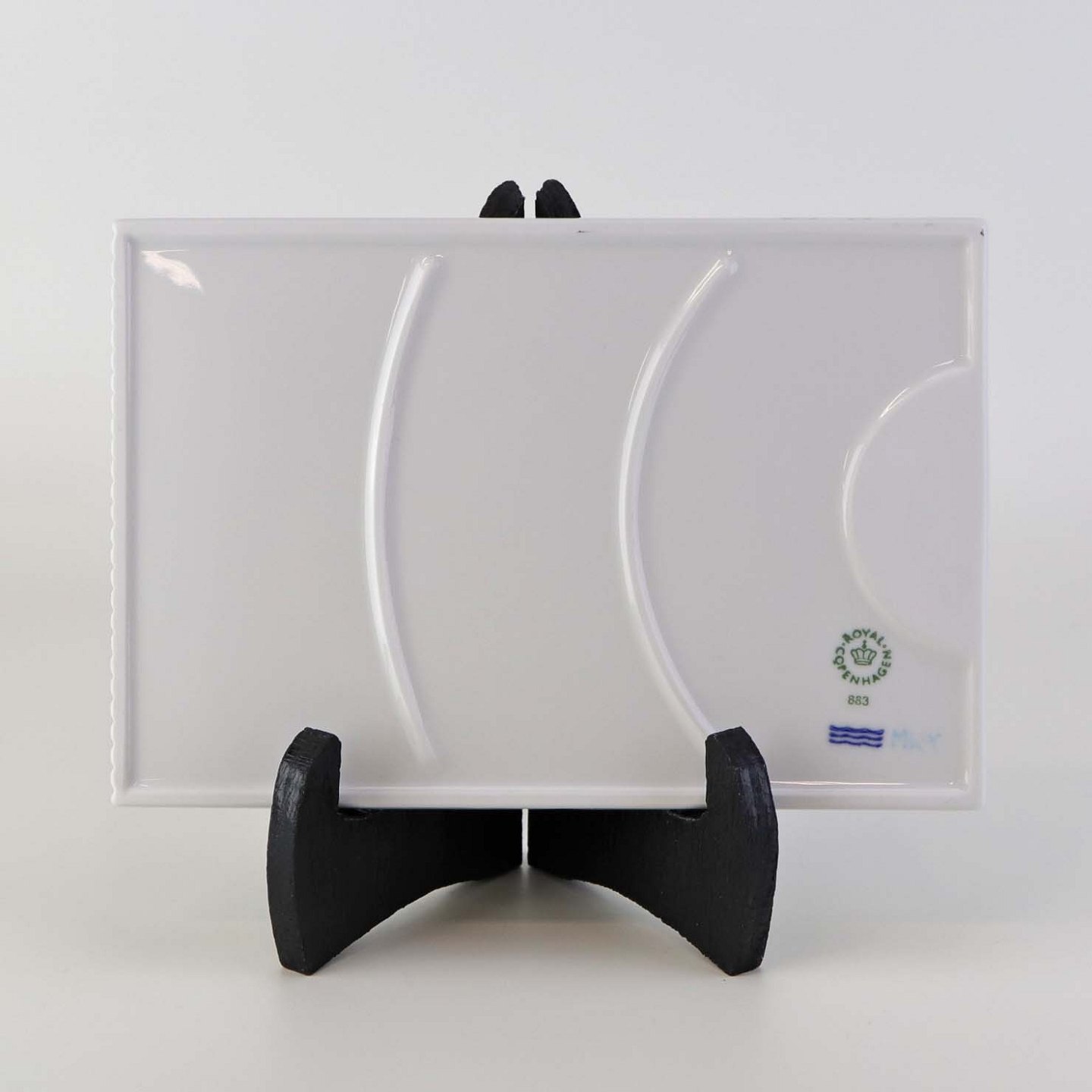 Beskrivelse: Smørrebræt med turkis mønster i kongeligt porcelæn fra stellet Multifarvet Elements. Nr. 883
