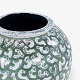 Kolossal krukke i stentøj med grøn glasur og hvide stafferinger. Signeret.
