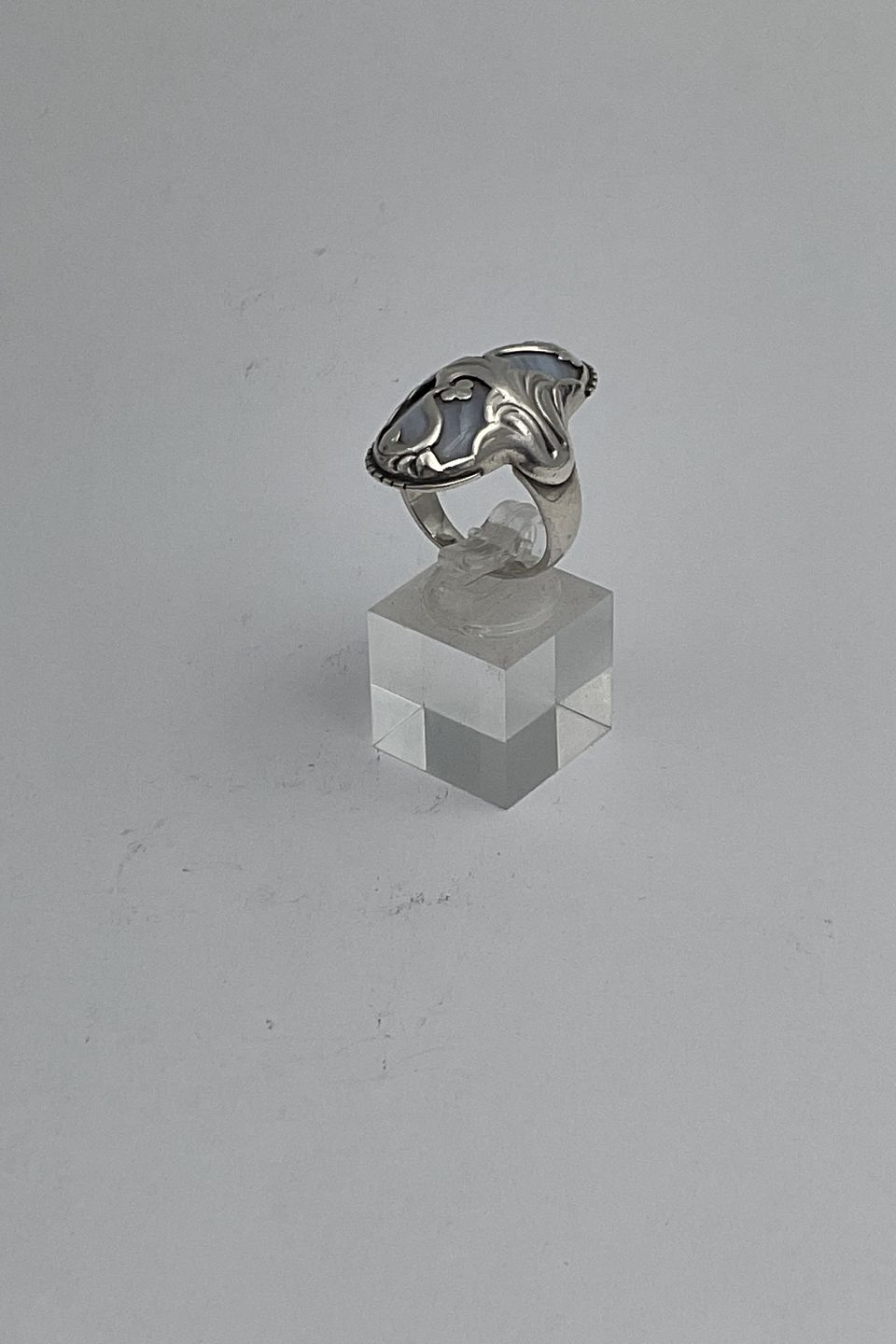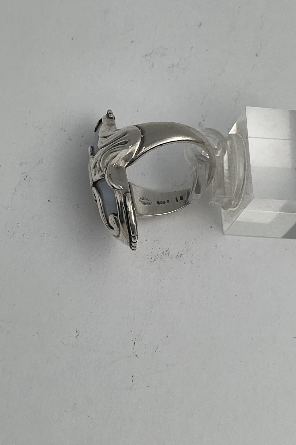 Beskrivelse: Georg Jensen Sterling Sølv Ring No. 18 m Chalcedon sten. Moonlight Blossom Ringstørrelse 57 / US 8