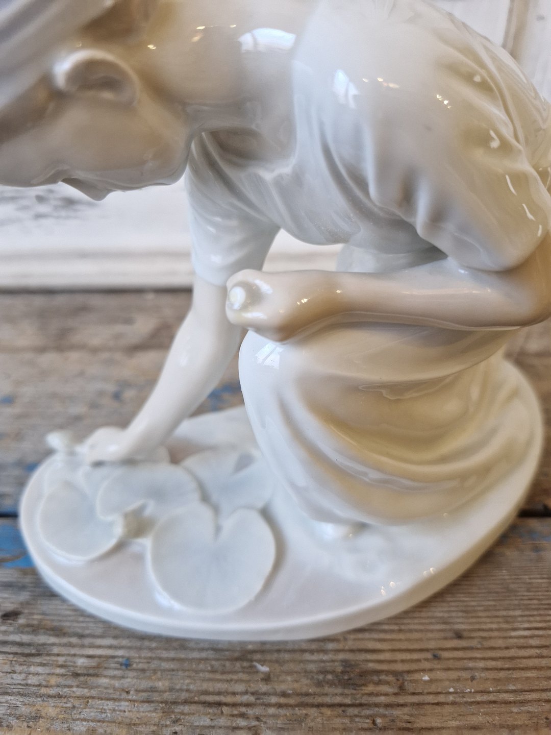 Beskrivelse: B&G sjælden Art Nouveau figur - Pige der plukker åkander