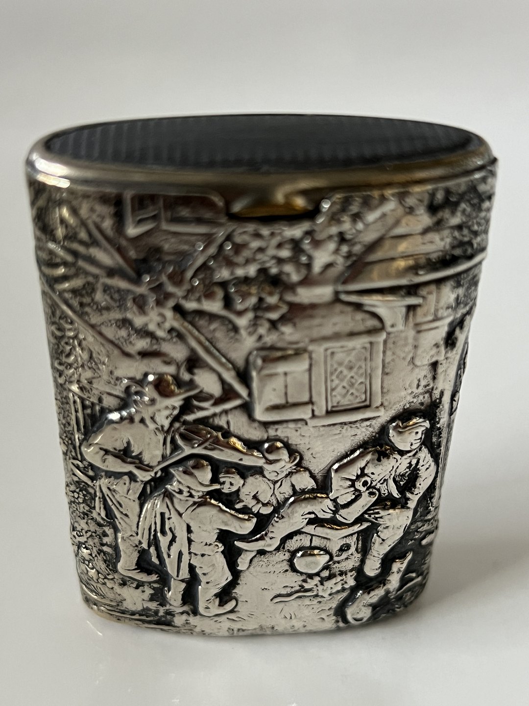 Sølvæske i sterlingsølv med flot motiv. Stemplet 925.