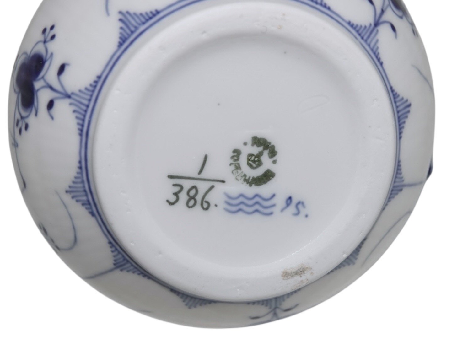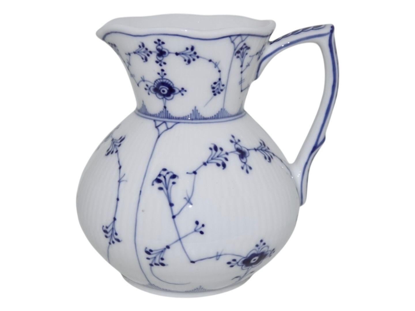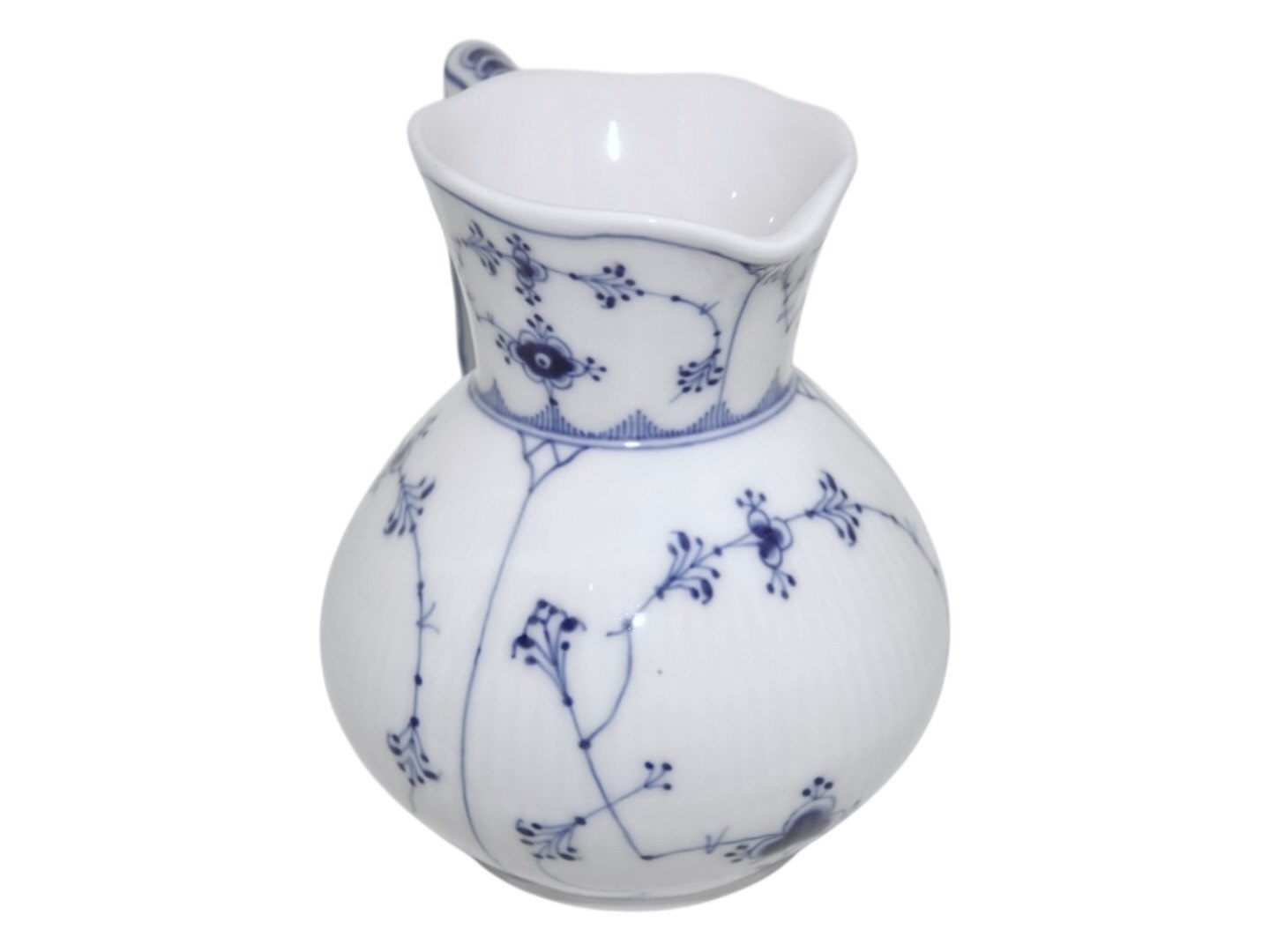 Beskrivelse: Royal Copenhagen Musselmalet Riflet, sjælden mælkekande.
