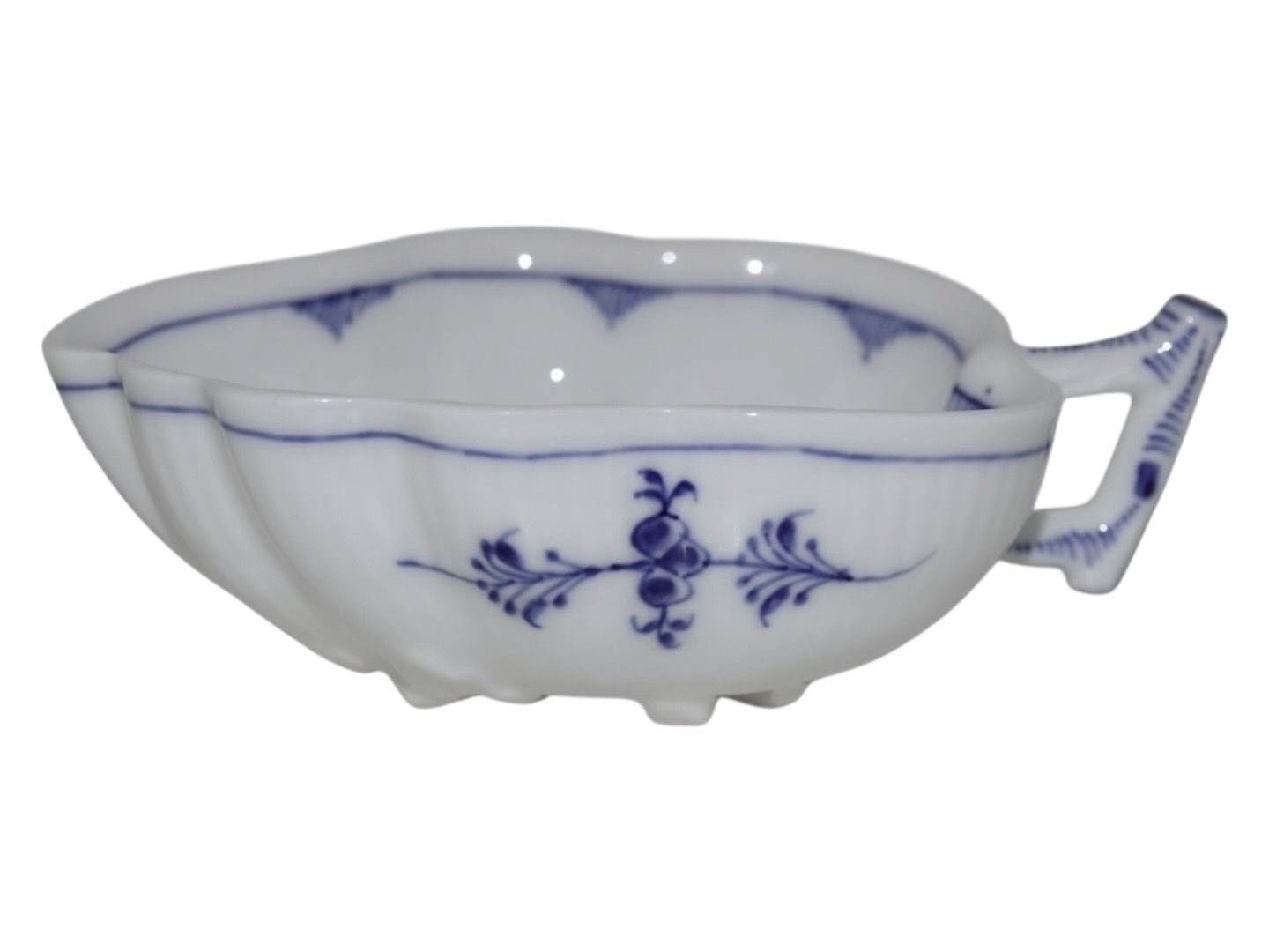 Beskrivelse: Royal Copenhagen Musselmalet Riflet, sjælden lille skål med hank.