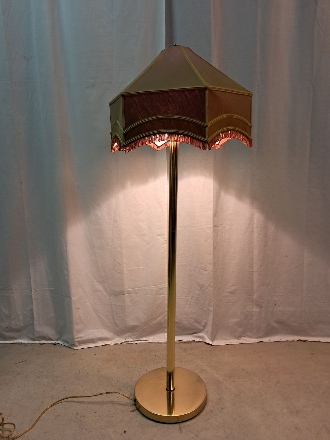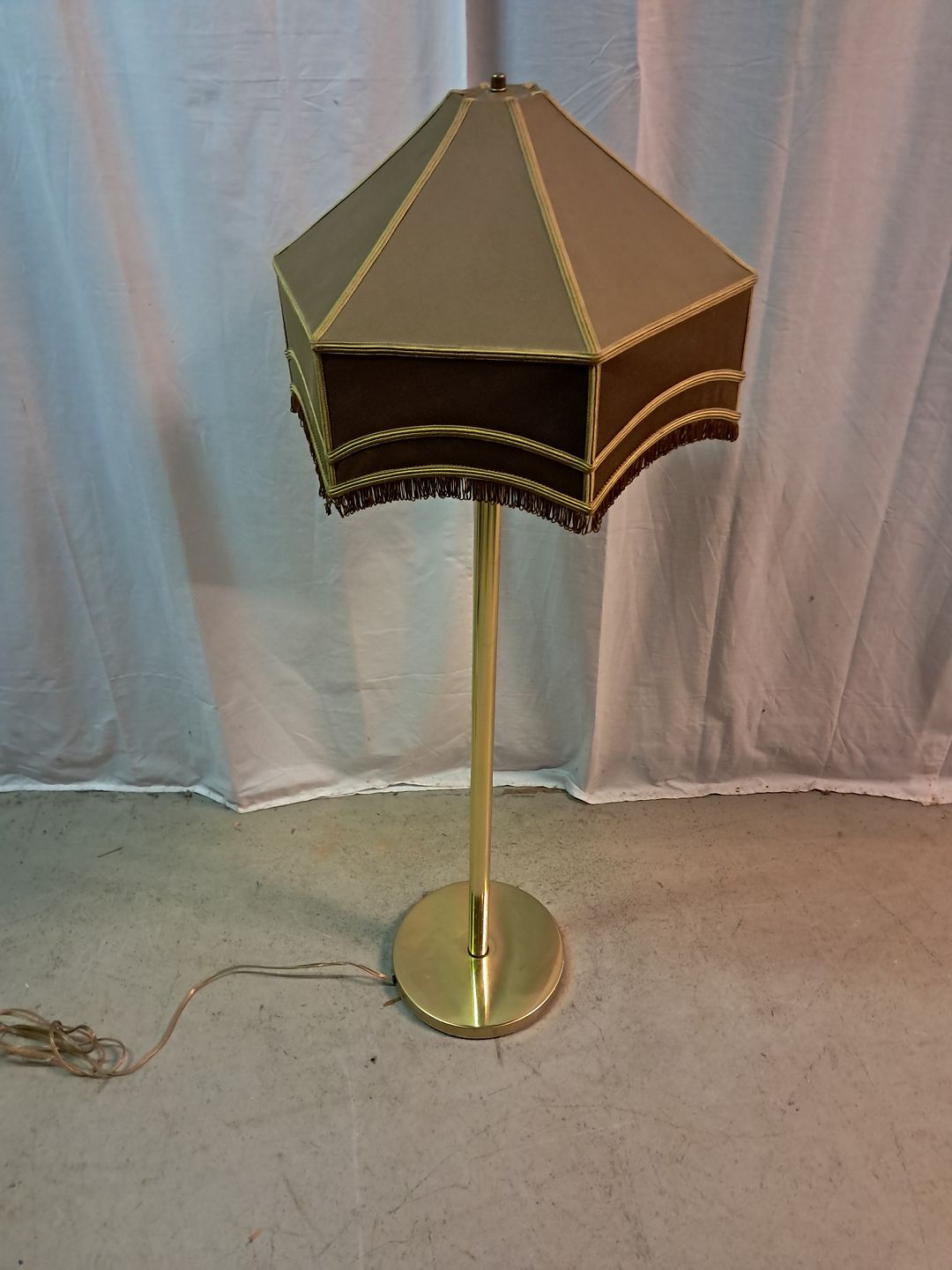 Beskrivelse: Gulvlampe i metal med lampeskærm, fra 1990erne.