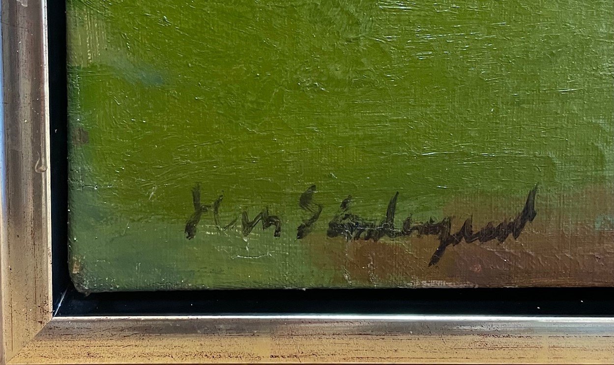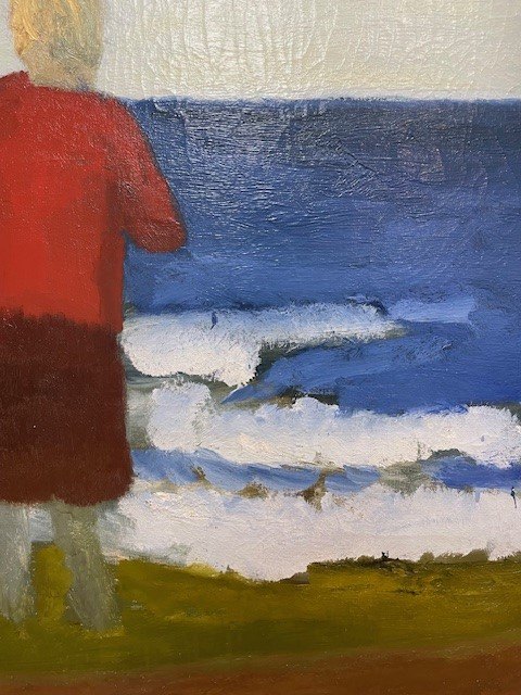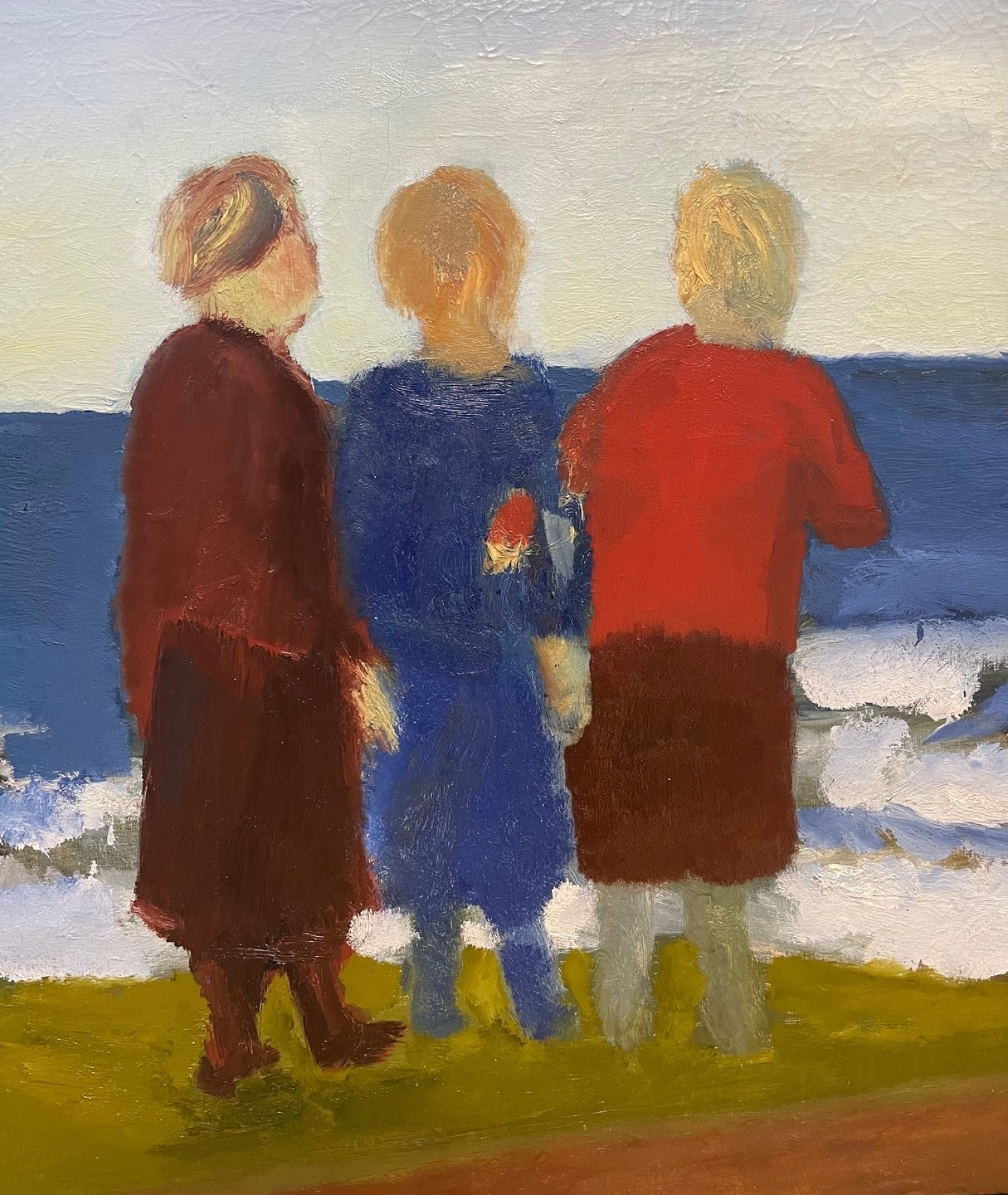 "Kvinder på stranden" Oliemaleri i sølv svæve ramme, maleriet har nogle krakeleringer, sælges for kunde.