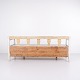 Beskrivelse: Antik slagbænk fra 1860’erne i gråmalet fyrretræ. Klassisk almuedesign med siddeplads og opbevaring. Historisk og funktionelt møbel.