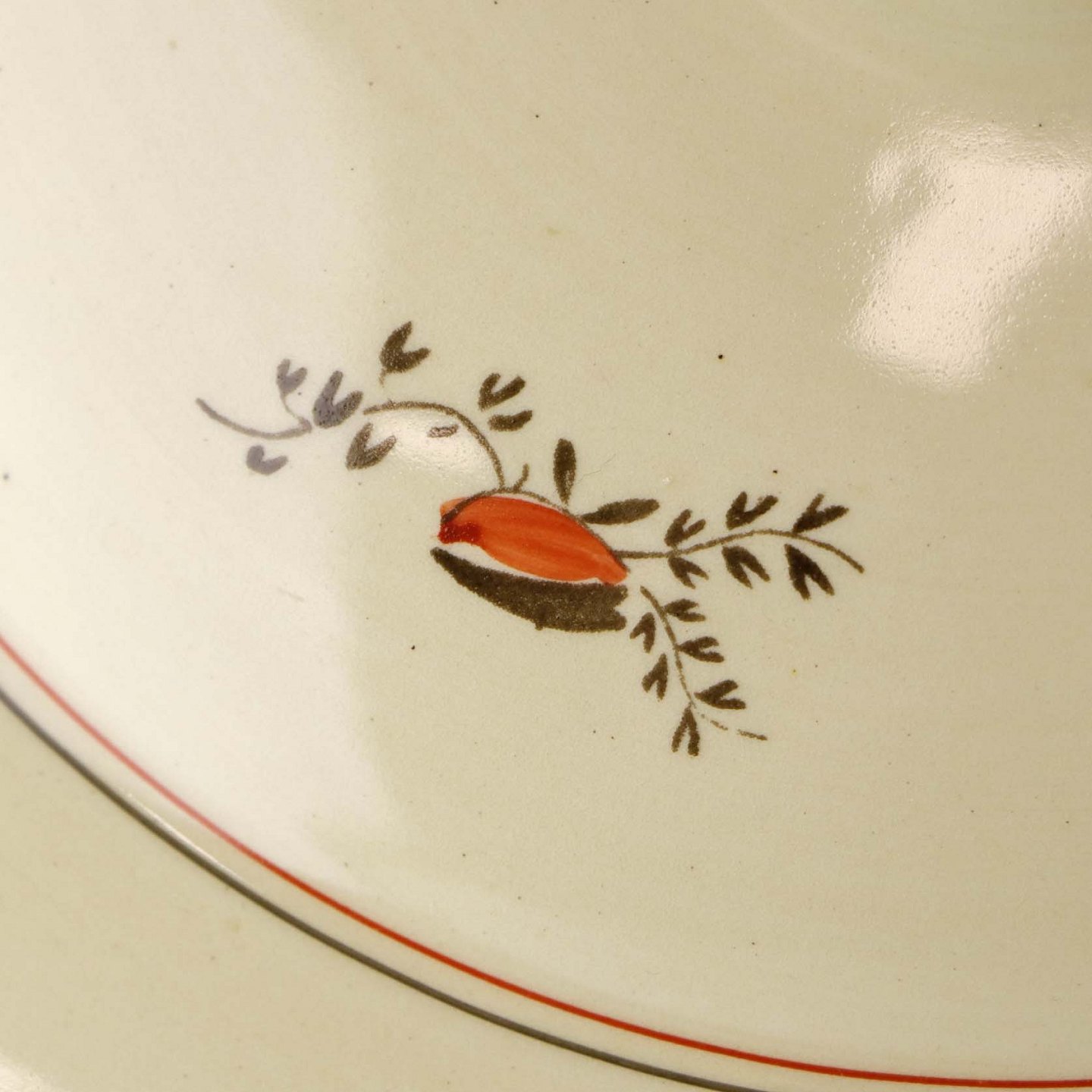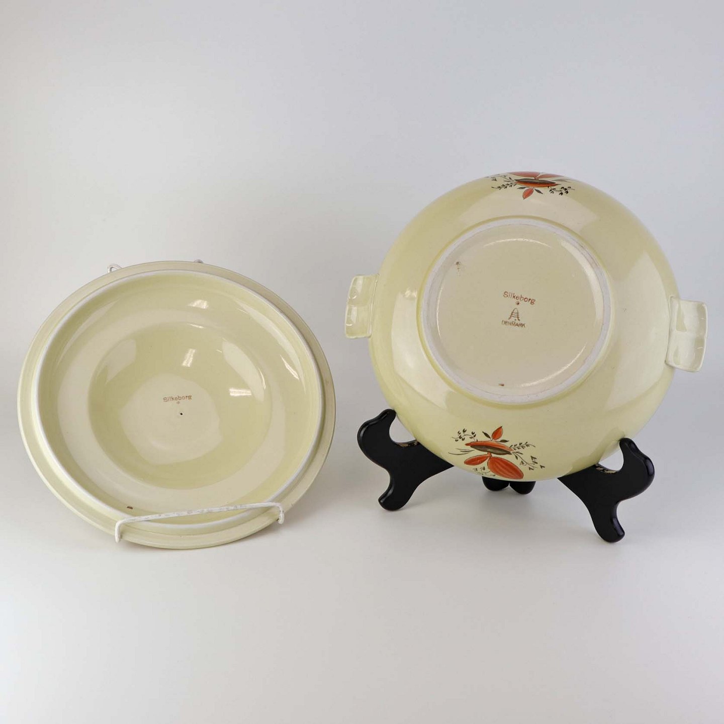Beskrivelse: Lågfad i fajance fra stellet Silkeborg fremstillet i perioden 1937-1939