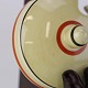 Fajancestel i stelform E med orangerød og brunt dekoration på gul baggrund og med orangerød kant.