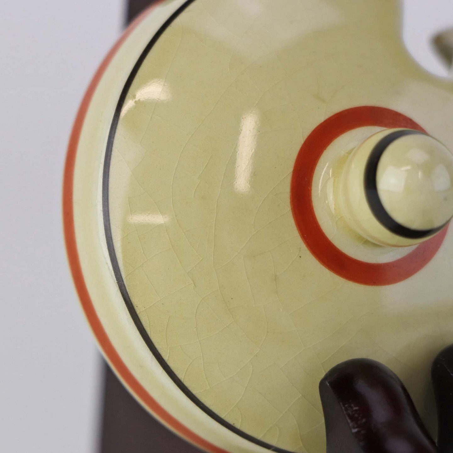 Fremstår med brugsspor på dekorationen og krakkeleringer i glasuren.