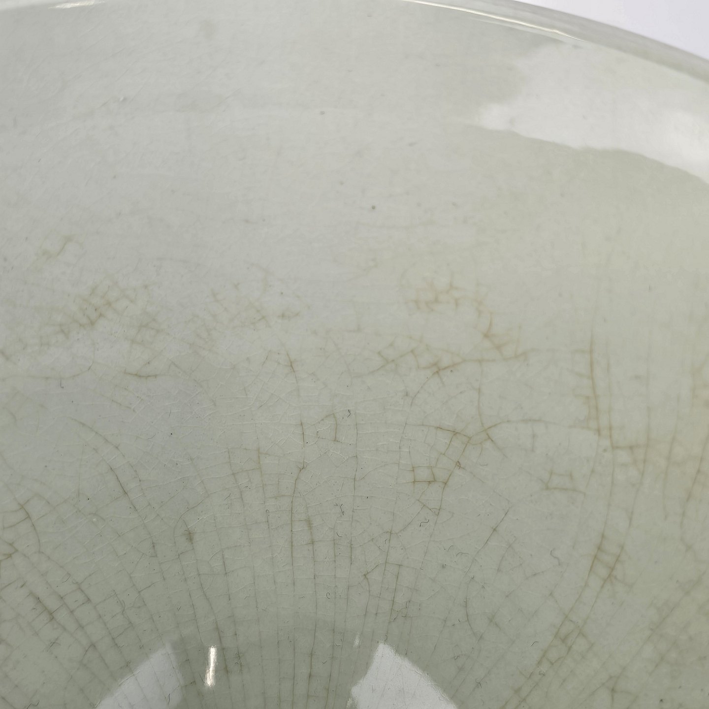 Stel i lysegrøn fajance med natur dekoration og flettet kant