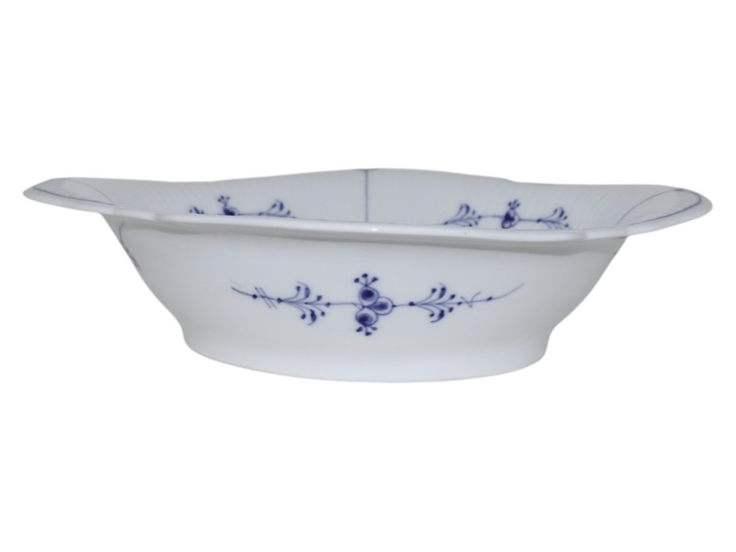 Beskrivelse: Royal Copenhagen Musselmalet Riflet, stor og sjælden oval skål.