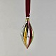 Beskrivelse: Juleornamenter i glas med motiv af en klokke og en aflang julekugle med rødt bånd til ophæng