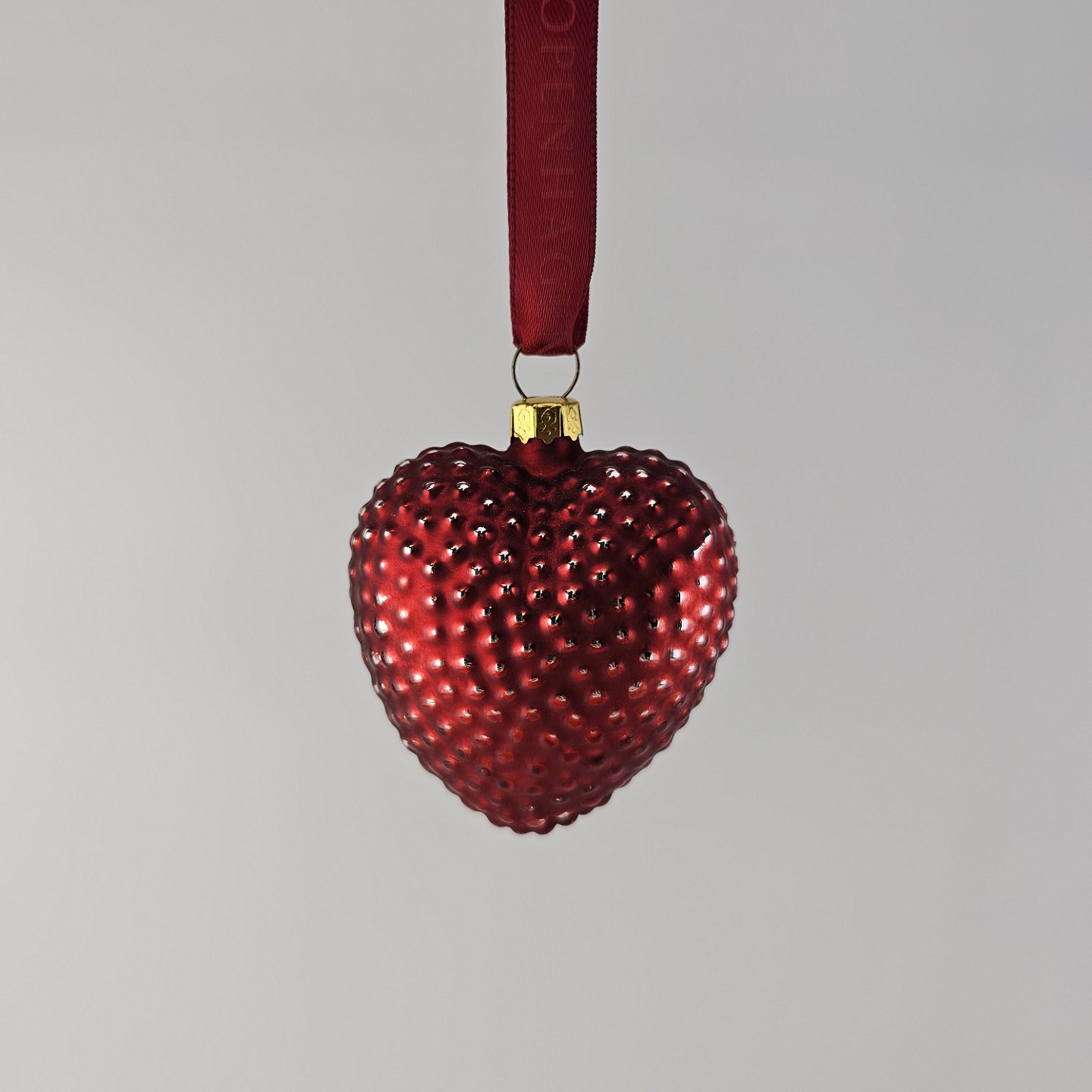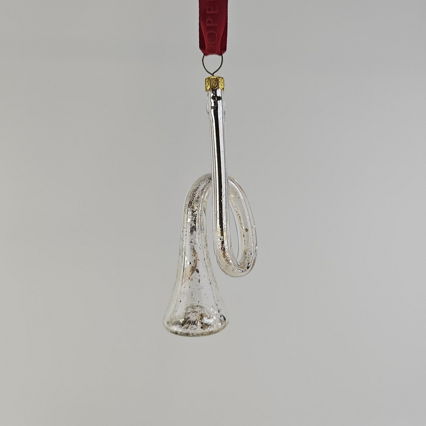 Beskrivelse: Juleornamenter i glas med motiv af et hjerte og en trompet med rødt bånd til ophæng