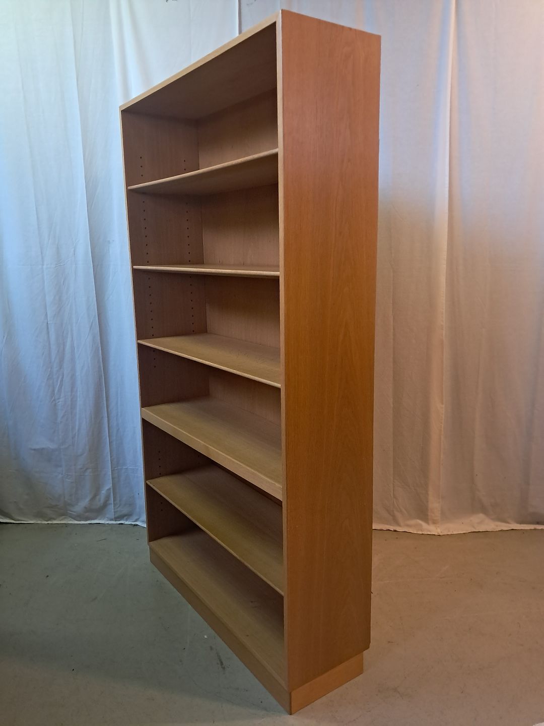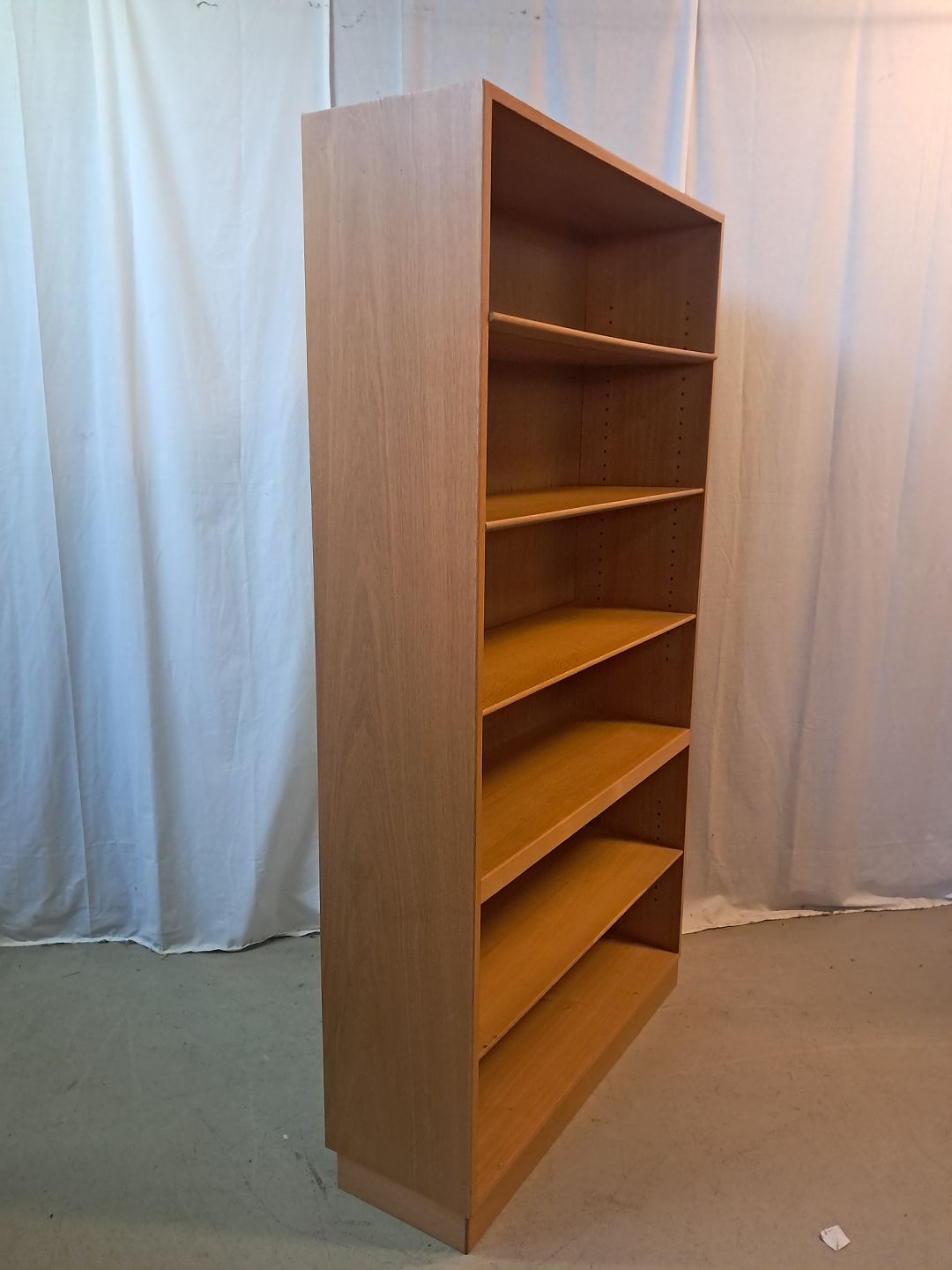 Beskrivelse: Reol fra Søborg møbelfabrik i fineret egetræ, fra 1970erne.