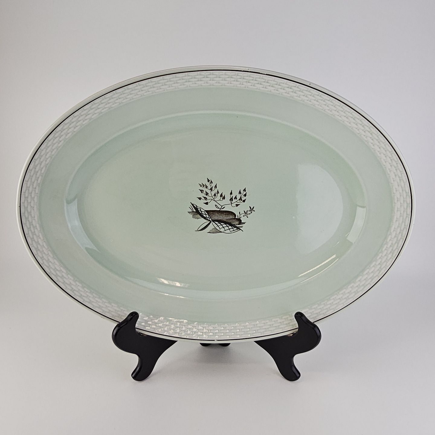 Beskrivelse: Ovalt fad i fajance fra stellet Saltholm