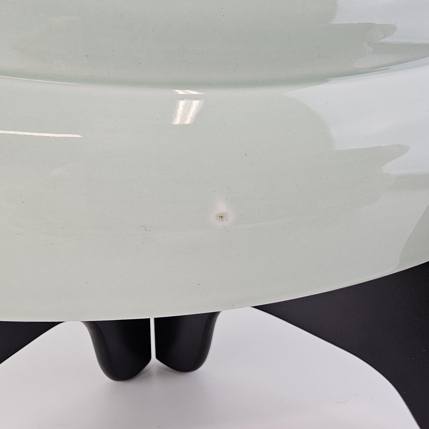 Stel i lysegrøn fajance med natur dekoration og flettet kant