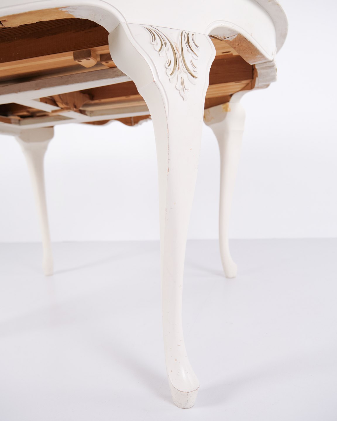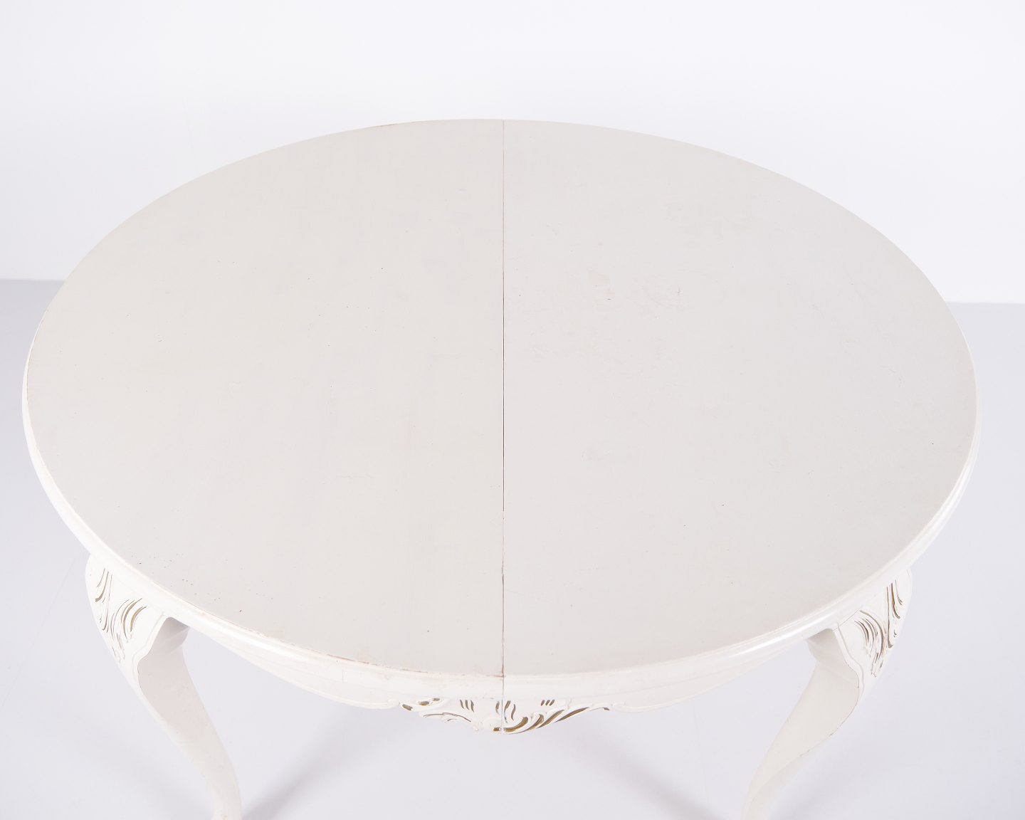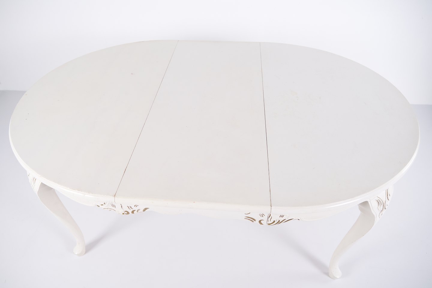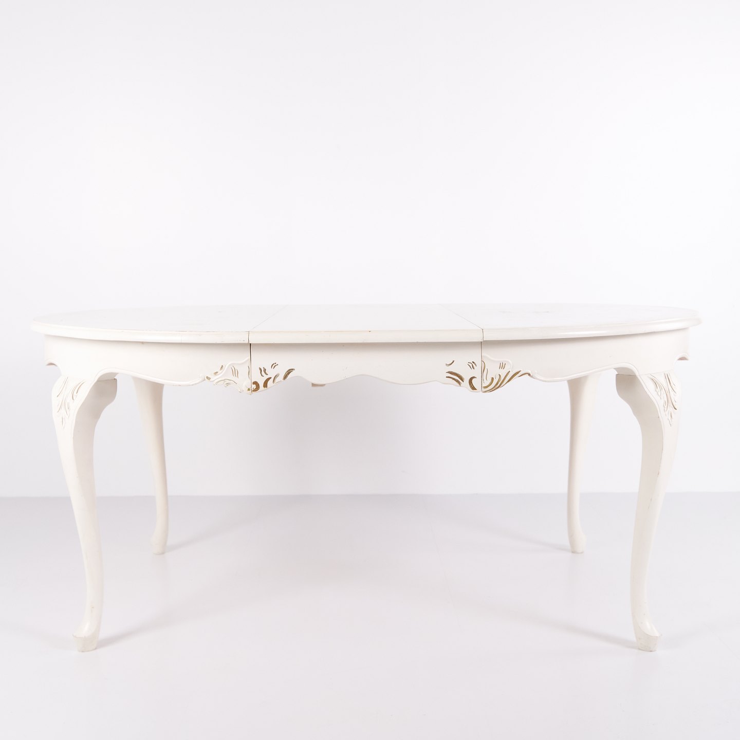 Antik Rundt Spisebord Med Udtræk - Ny Rokoko Stil - Hvidmalet Med Dekorative Detajler - År 1920erne