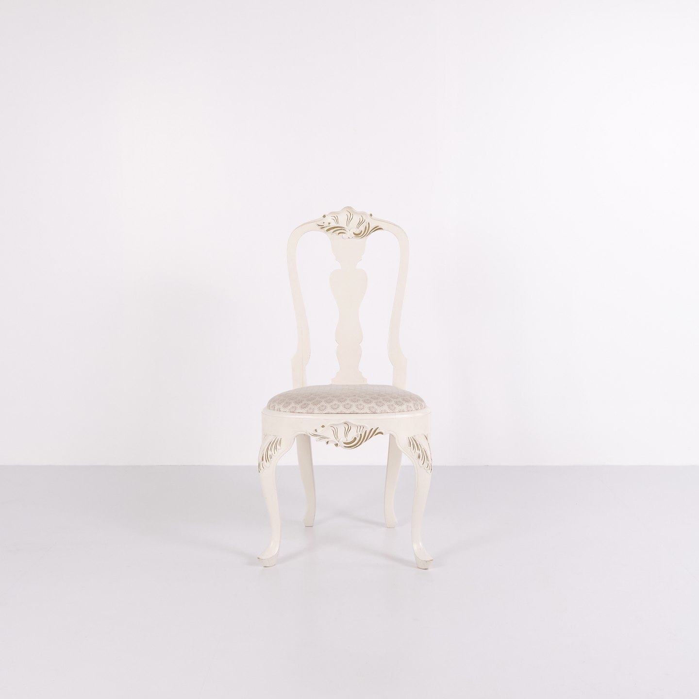 Sæt Af Seks Spisebordsstole - Ny Rokoko Stil - Hvidmalet Med Dekorative Detajler - År 1920erne