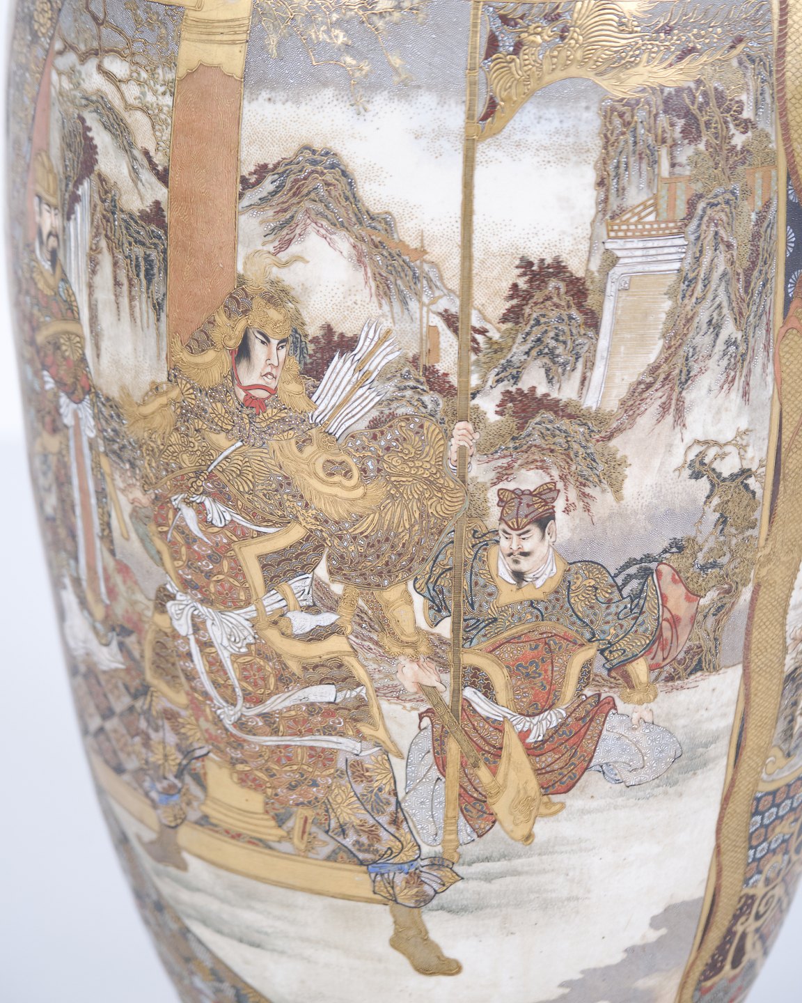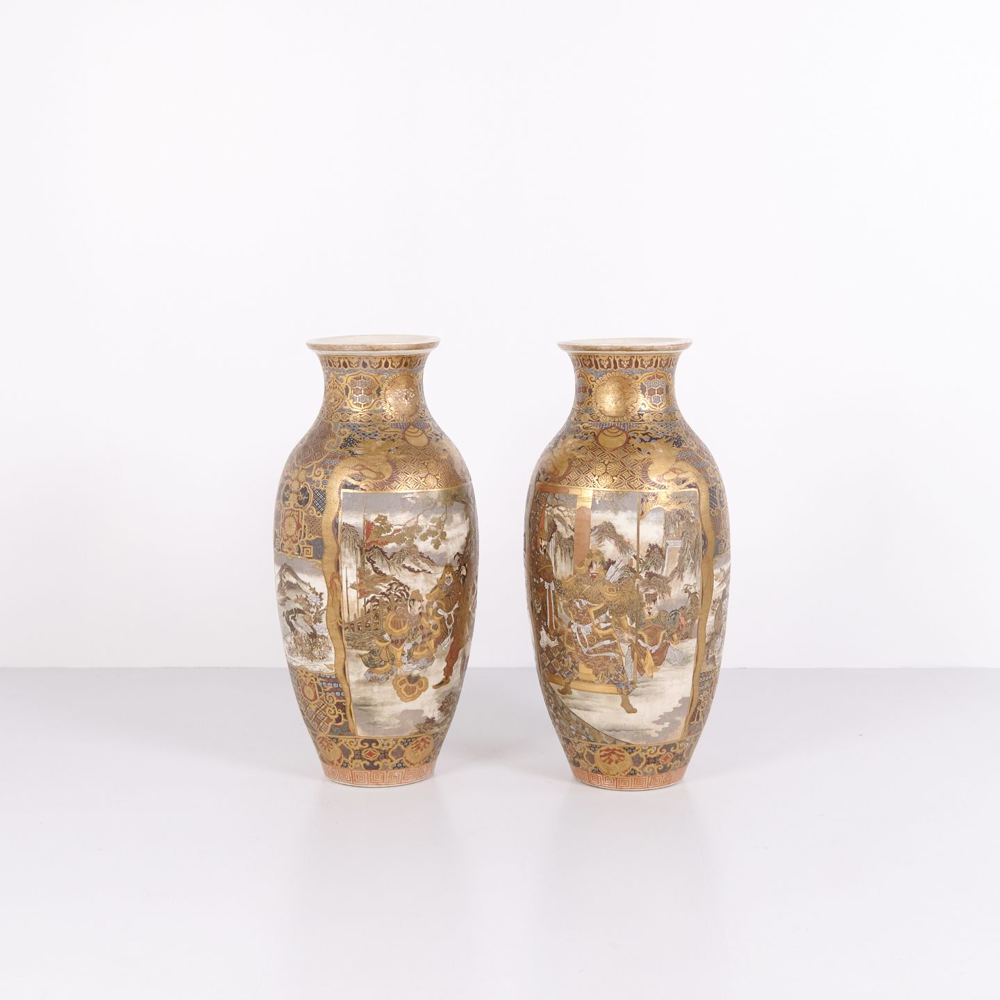 Beskrivelse: Store japanske satsuma-vaser fra Meiji-perioden (1868–1912) i håndmalet porcelæn. Sjældent par satsuma vase Japan 1800-tallet.