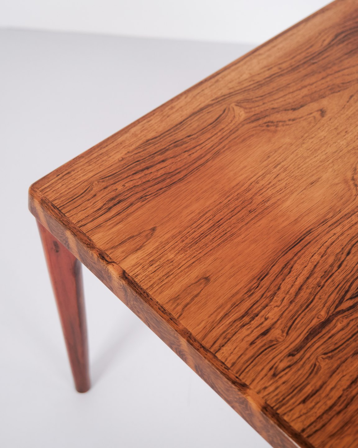 Description: Henry Kjærnulf sofa/side table from the 1960s in rosewood for Vejle Møbelfabrik. Danish design rosewood table.