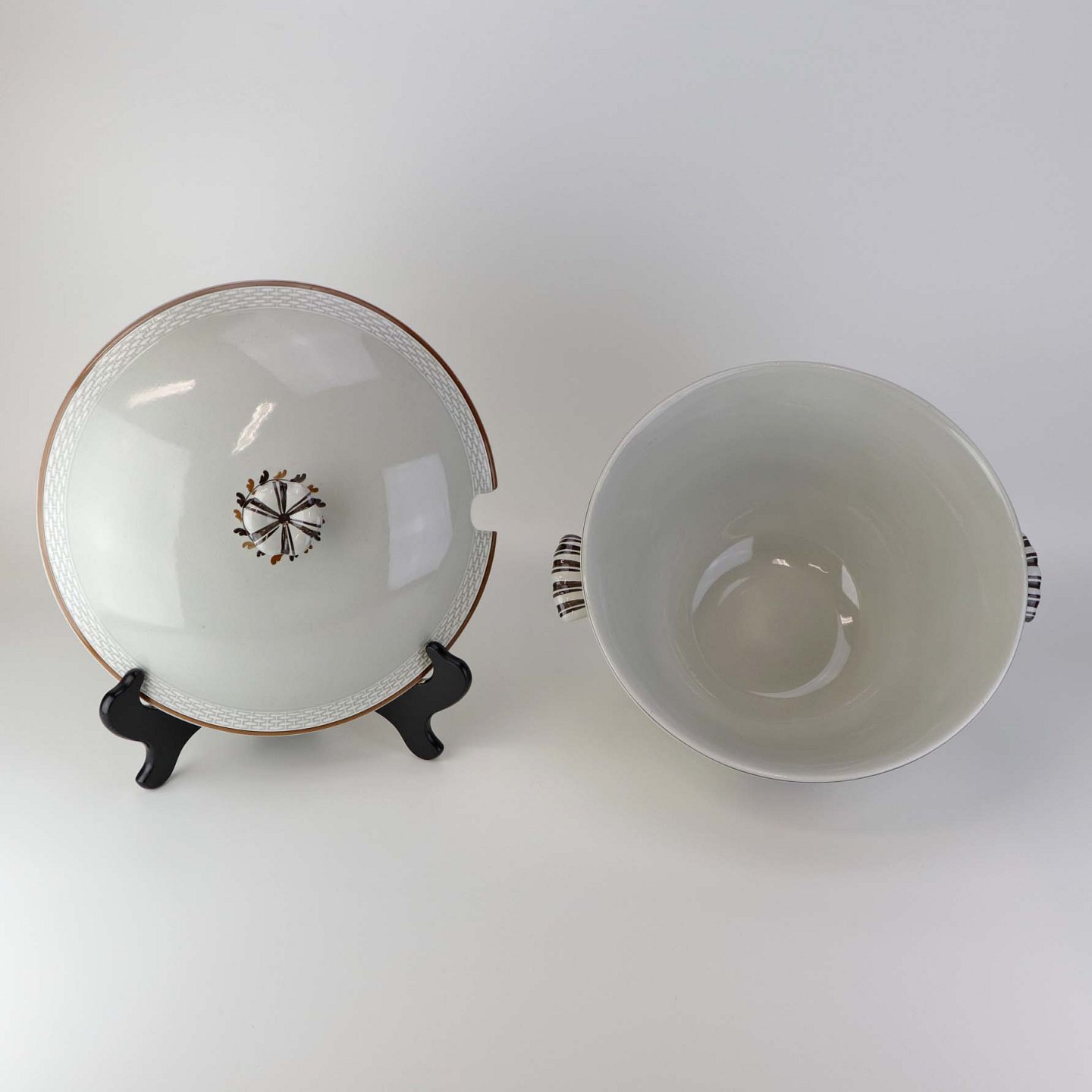 Beskrivelse: Stor suppeterrin i fajance fra stellet Kirsten, som blev fremstillet i perioden 1934-1957. Nr. 263/1518