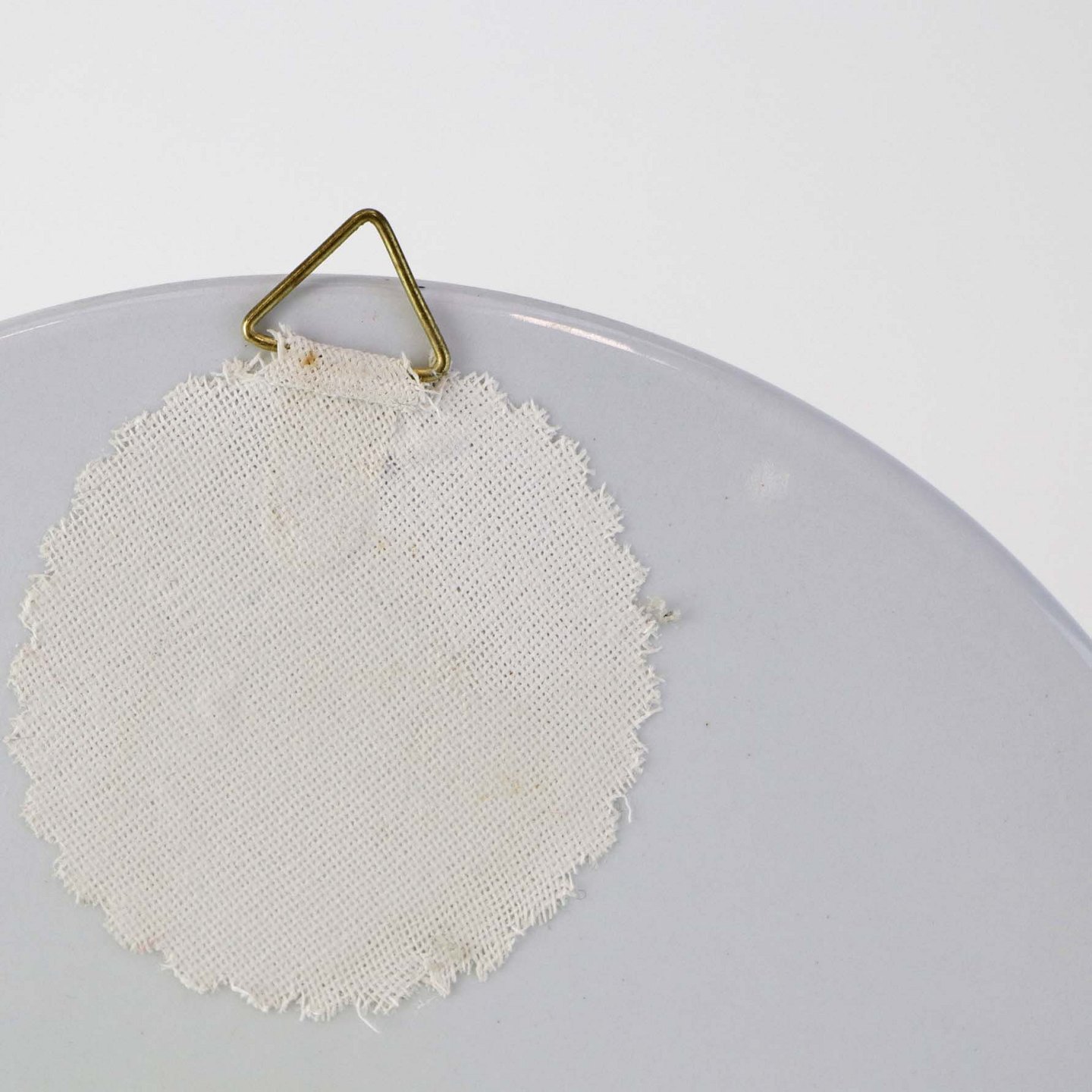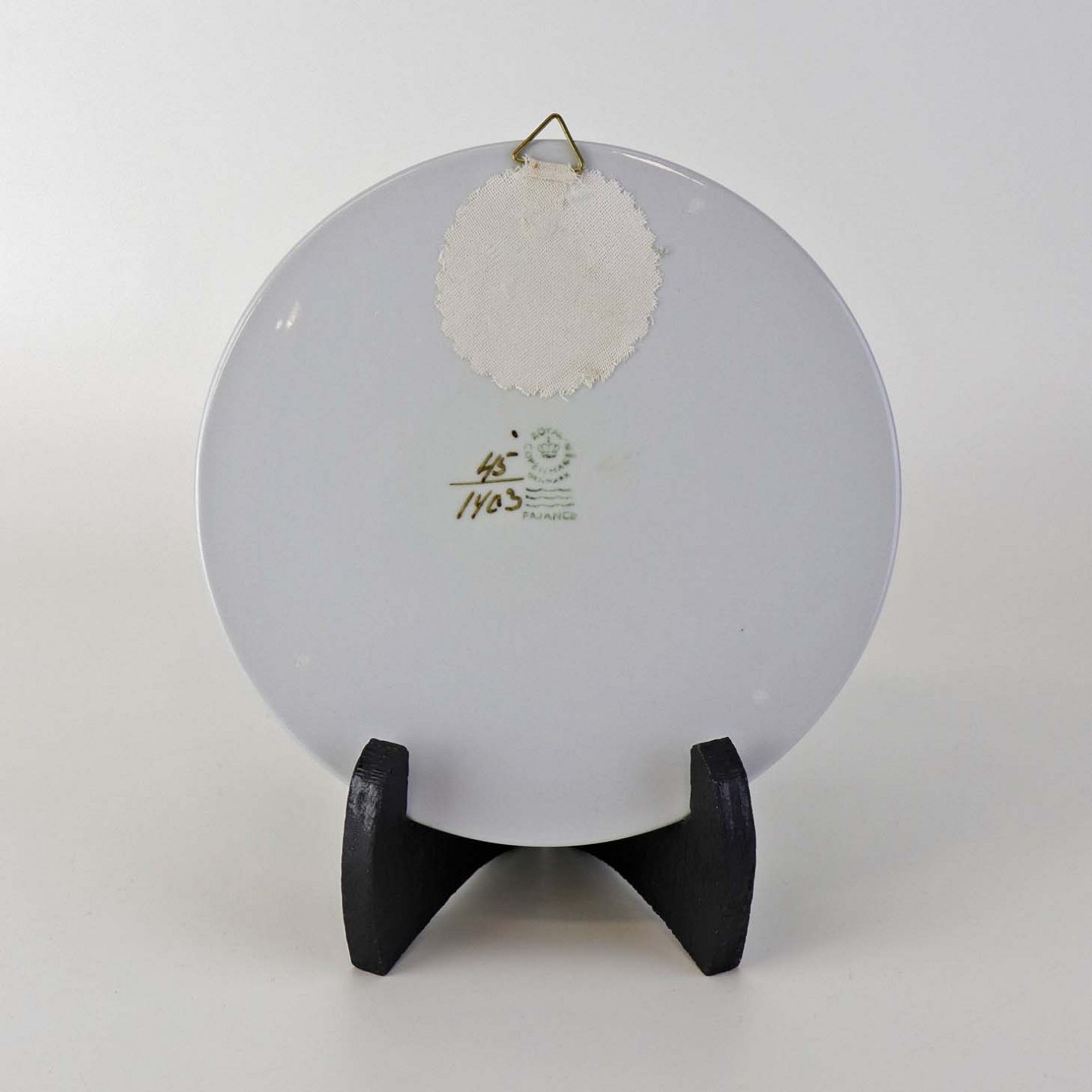 Beskrivelse: Rund smørbrik i fajance med ophæng fra stellet Brun Tranquebar fra år 1919. Nr 45/1403