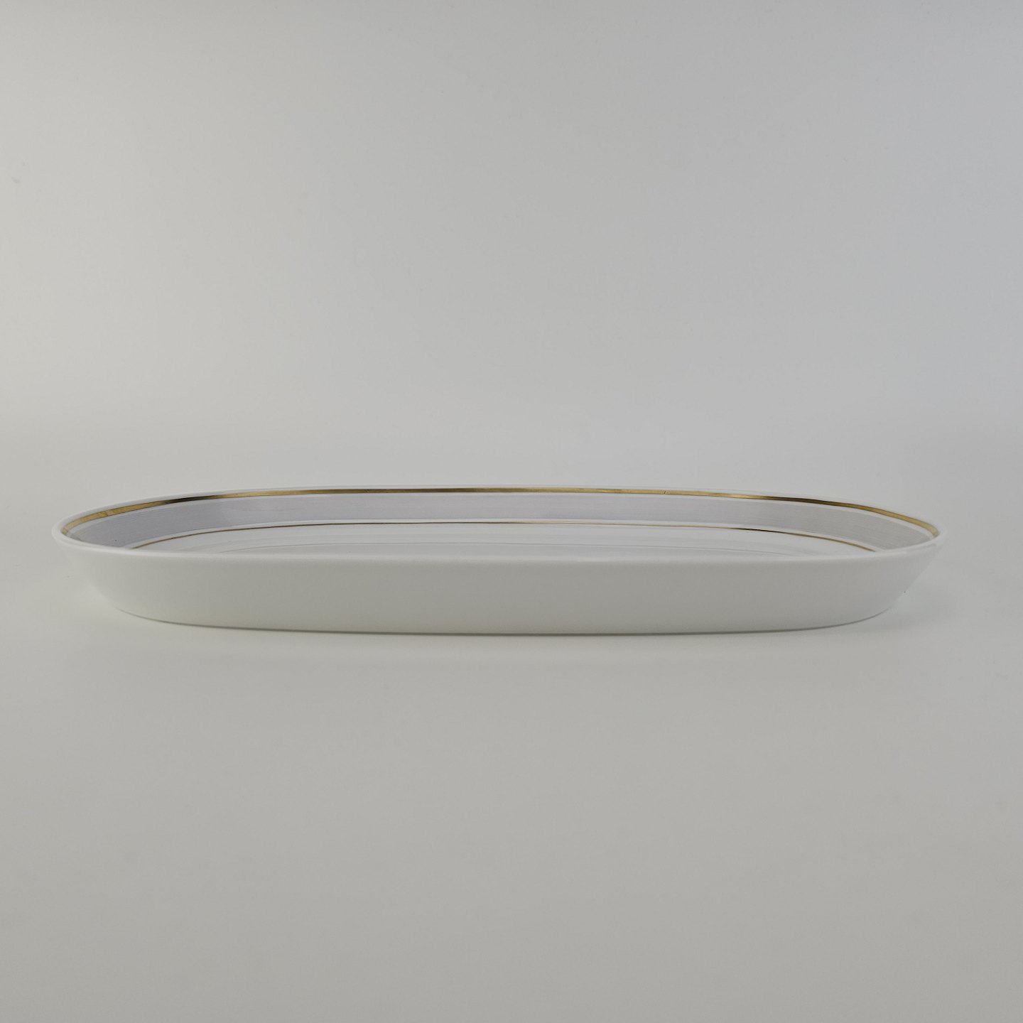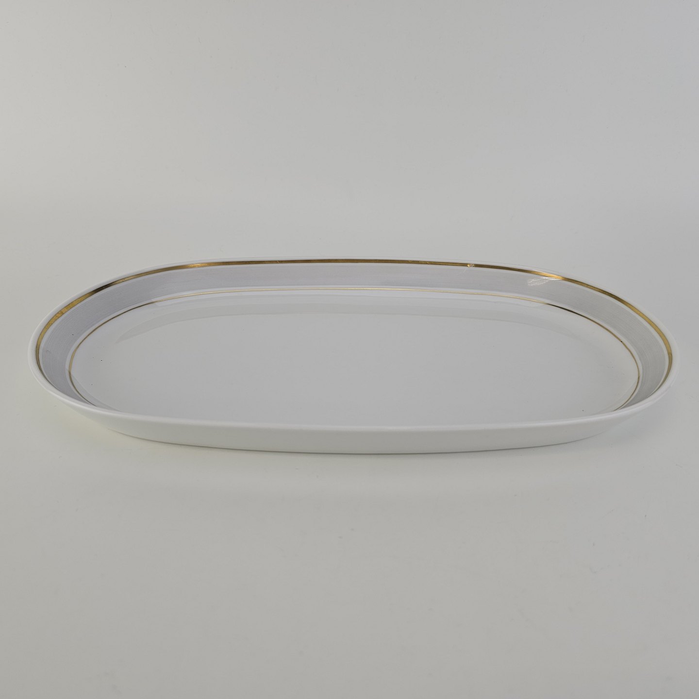 Beskrivelse: Aflangt fad i porcelæn fra stellet Tiber