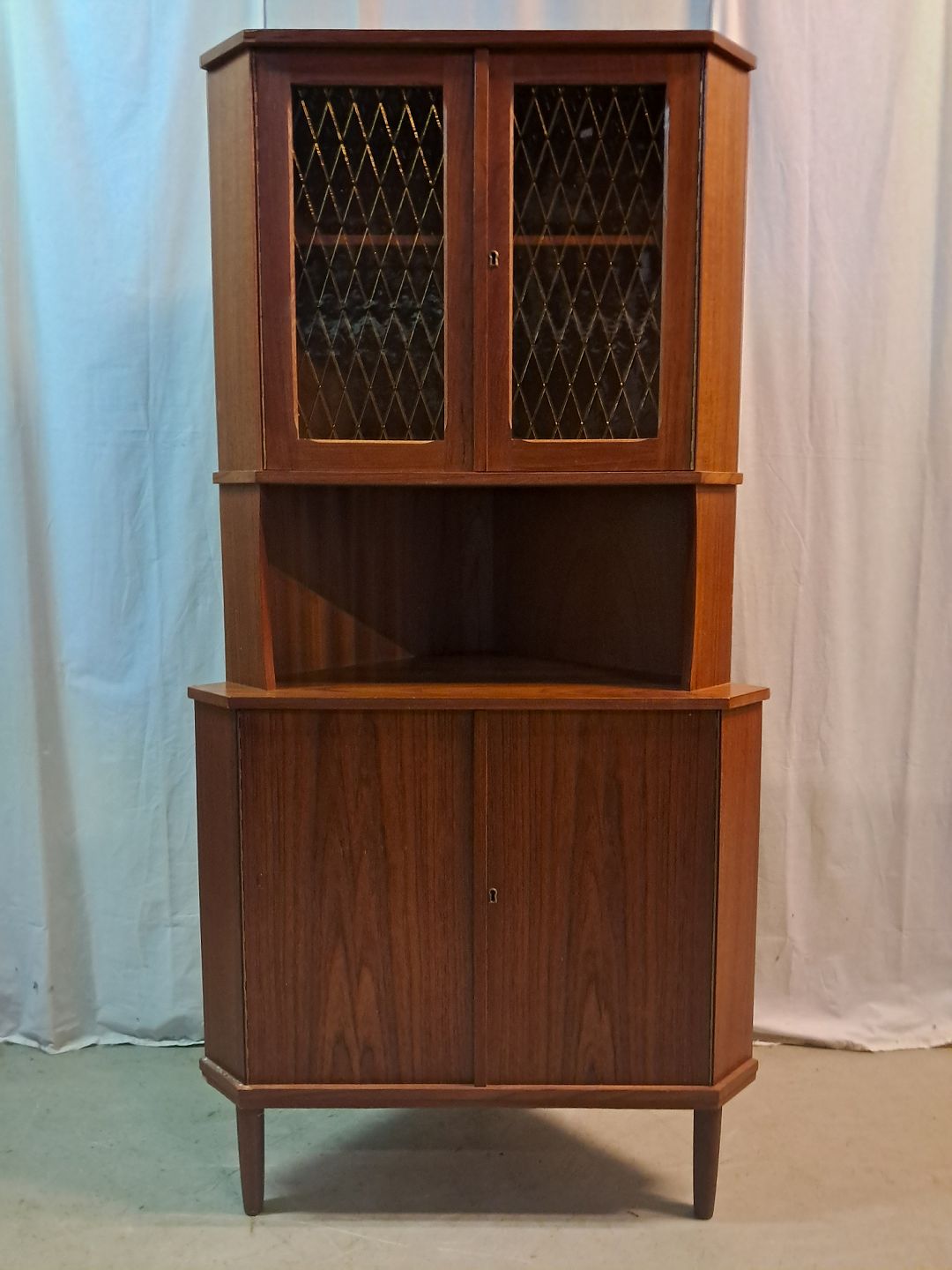 : Hjørneskab i fineret teaktræ, fra 1960erne.