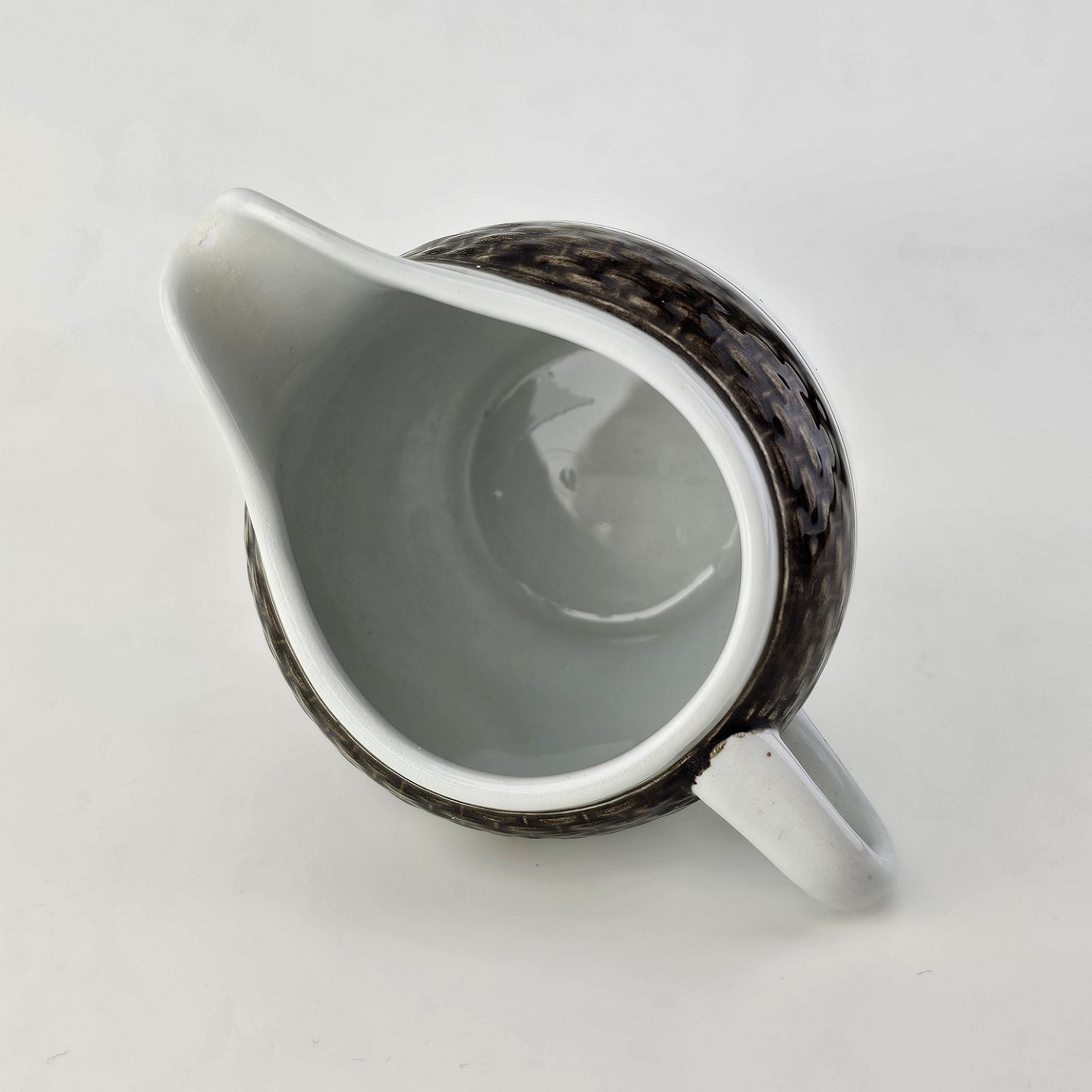 Beskrivelse: Flødekande i fajance fra stellet Brun Tranquebar fra år 1919