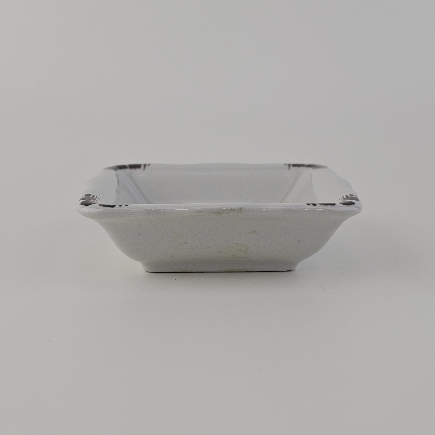 Beskrivelse: Firkantet asiet i fajance fra stellet Brun Tranquebar fra år 1919