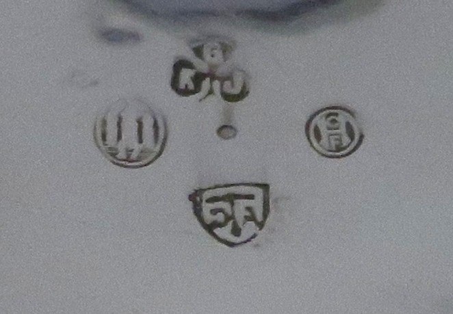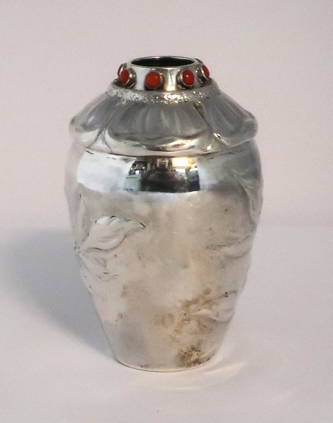 Description: Knud Georg Jensen, Copenhagen (KGI). Small silver vase with stone (830). Height 10 cm. Produced 1917.