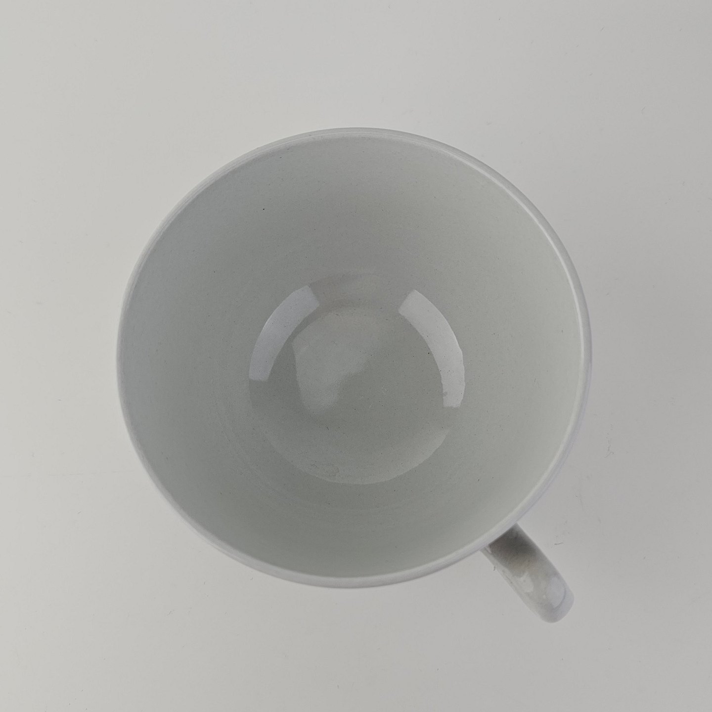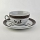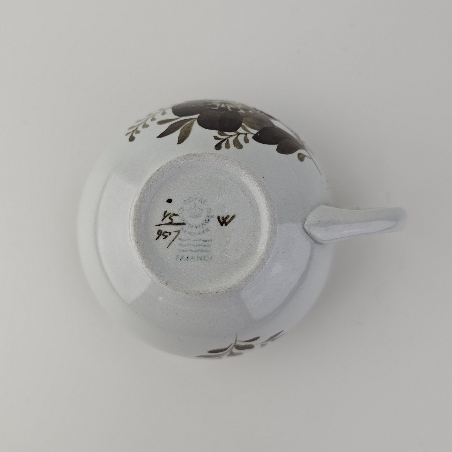 Beskrivelse: Tekop med underkop i fajance fra stellet Brun Tranquebar fra år 1919