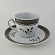 Beskrivelse: Moccakop med underkop i fajance fra stellet Brun Tranquebar fra år 1919