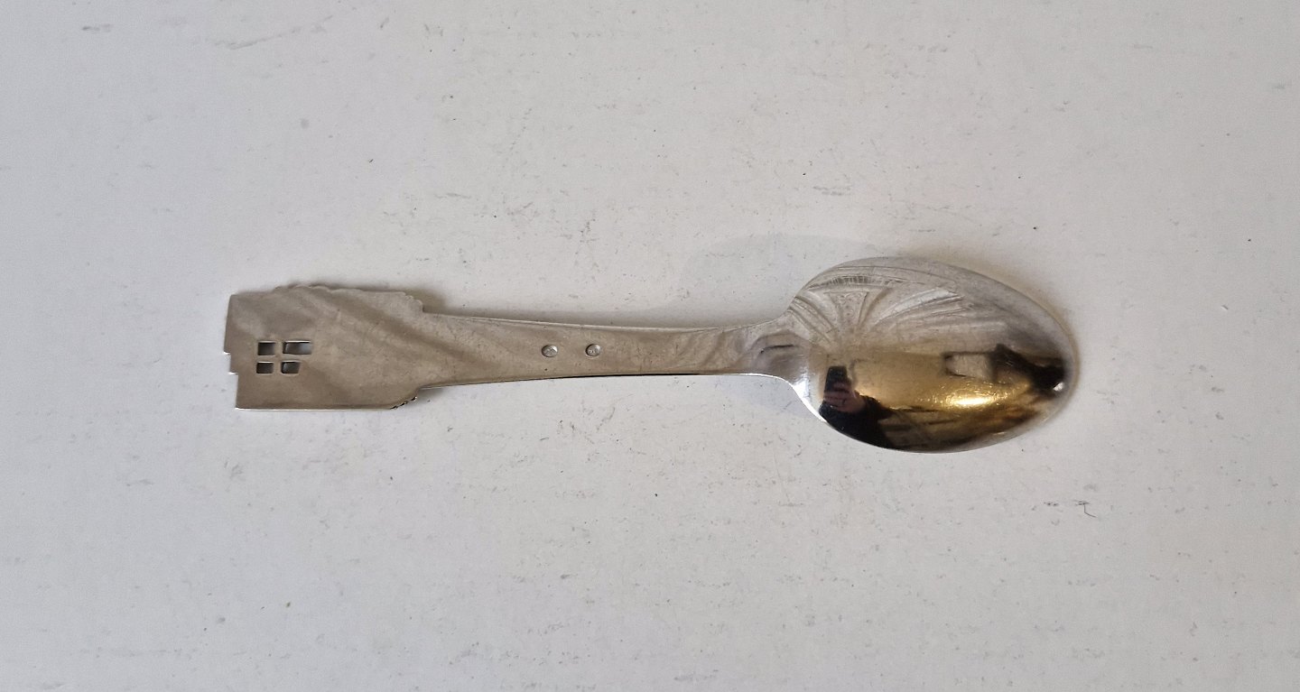 Beskrivelse: H.C.Andersen barneske i sølv - "Den lille pige med svovlstikkerne"