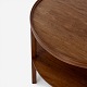 Round coffee table in patinated mahogany with underlying shelf. Manufacturer's mark.