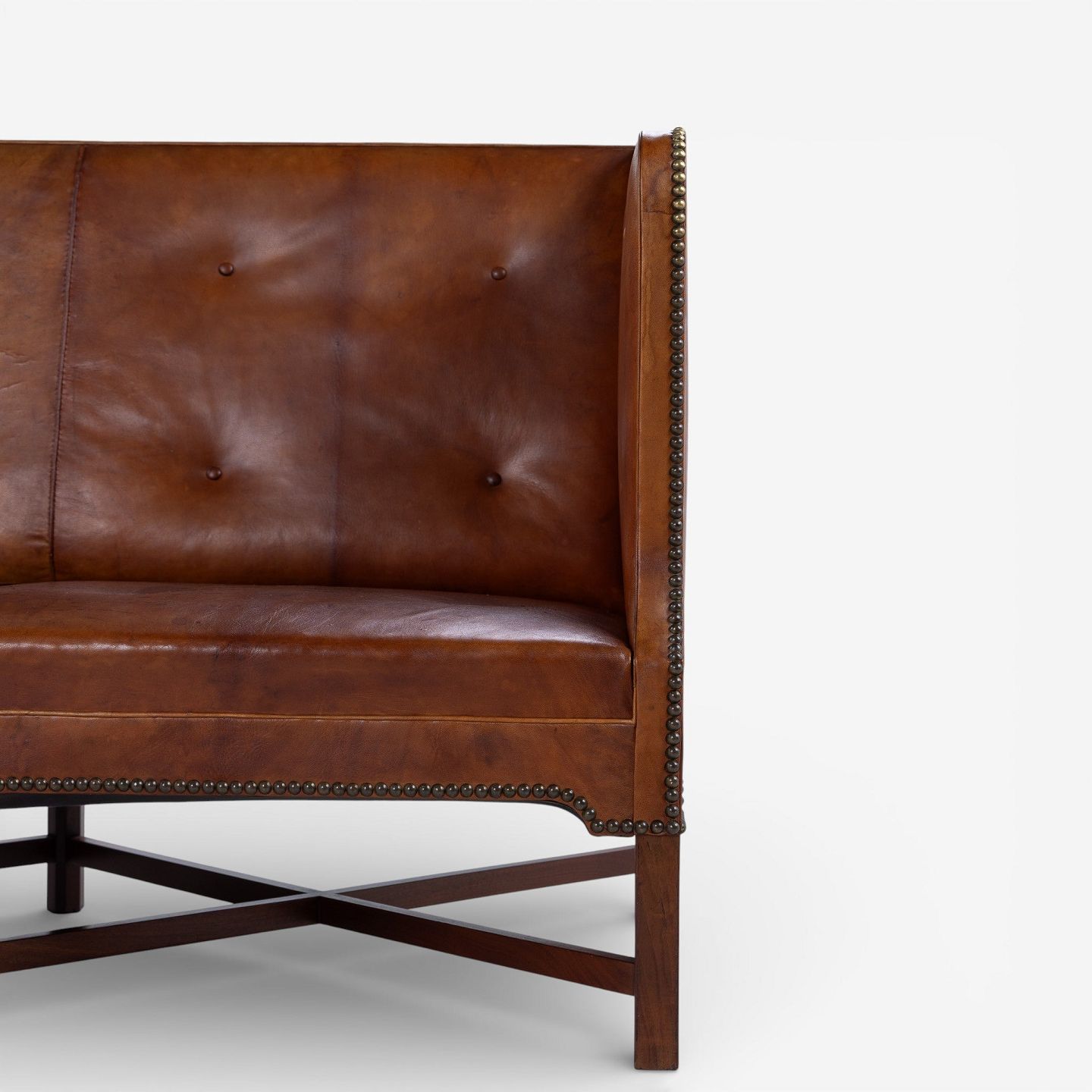 KK 4118 - 3 pers. sofa i patineret nigerskind på krydsstel i cuba-mahogni. Formgivet i 1930.