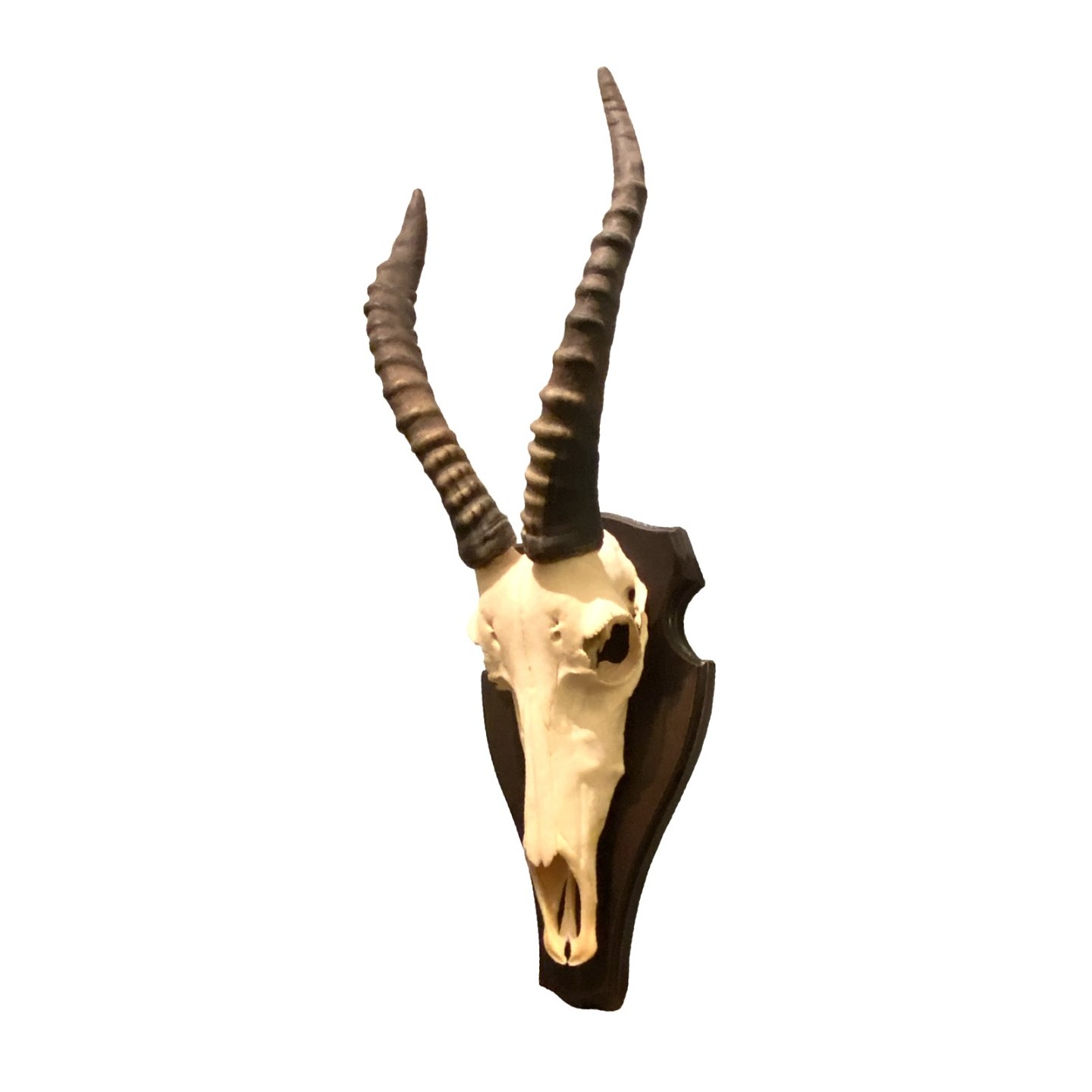 Beskrivelse: Jagttrofæ af Gazelle monteret på plade.