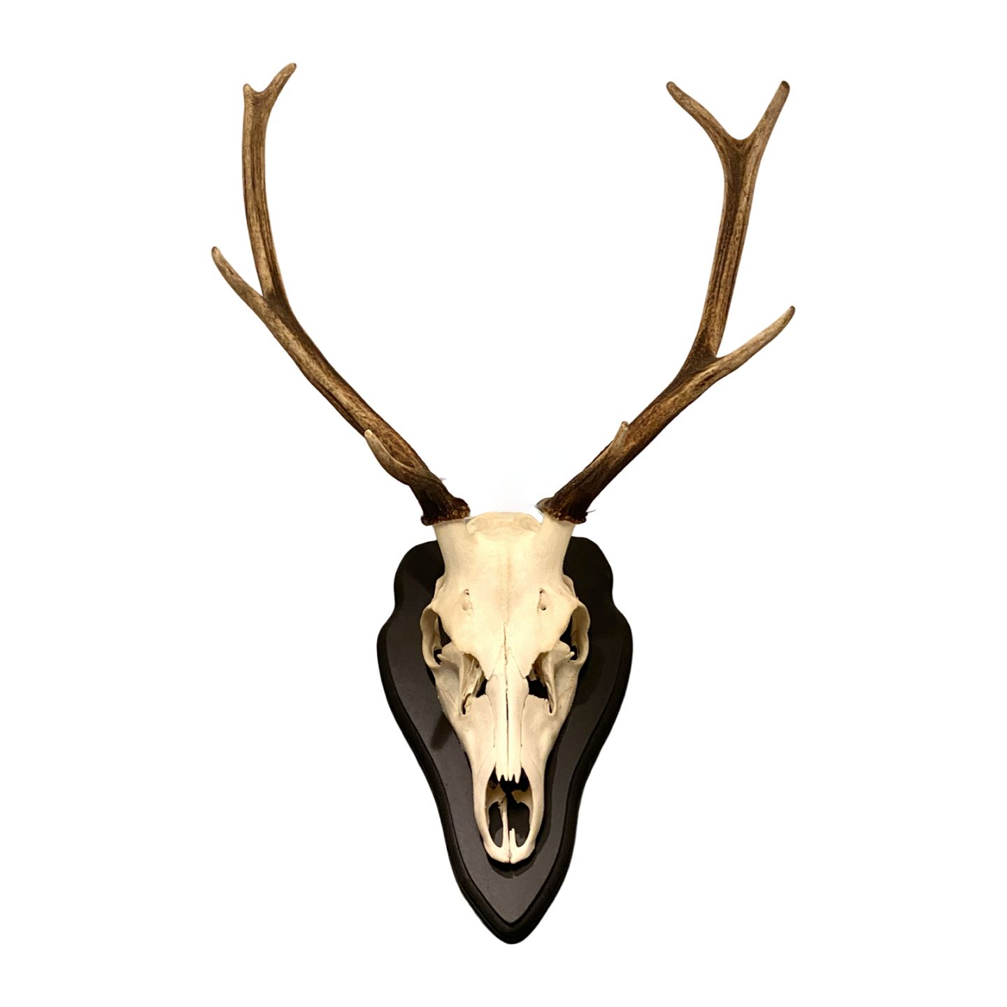 : Jagttrofæ af Kronhjort monteret på plade.