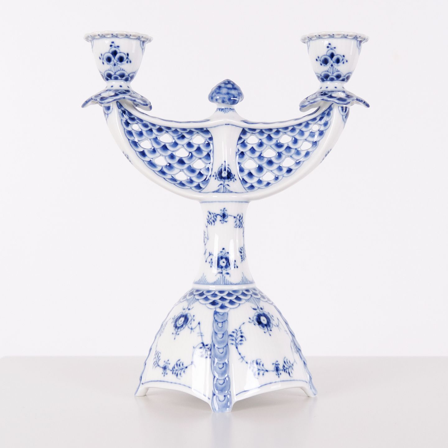 To-armet lysestage – Musselmalet helblonde – Model 1169 – Royal Copenhagen
