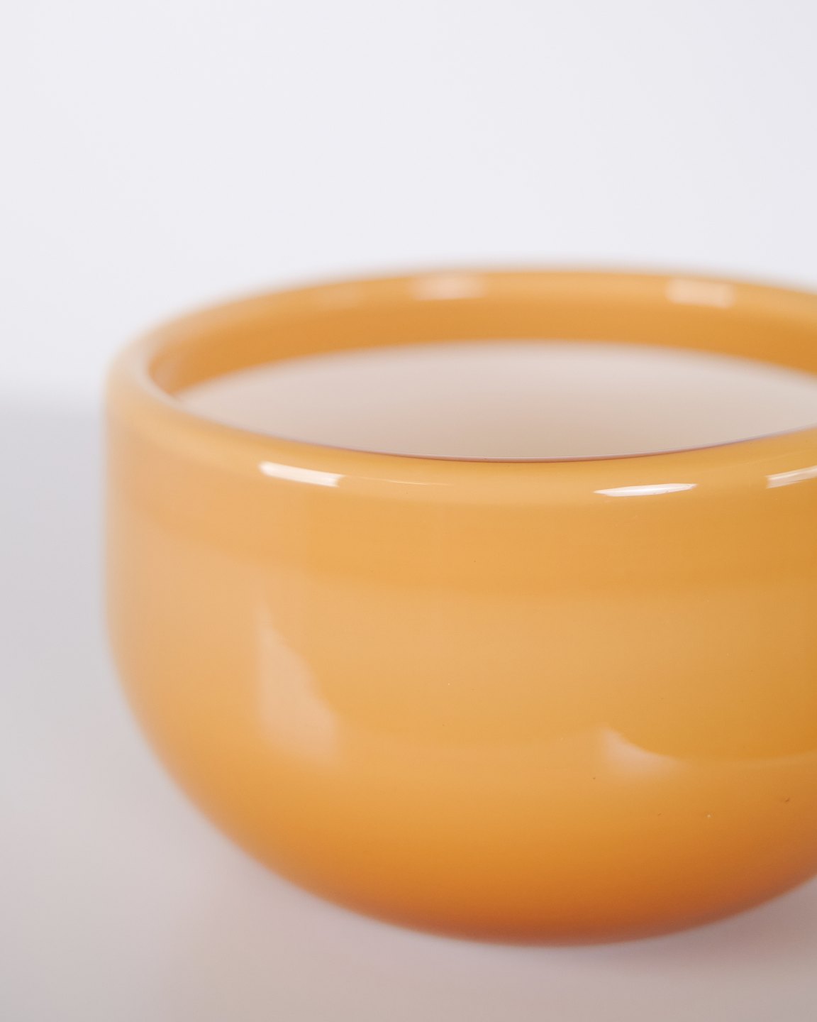 Beskrivelse: Glasskål fra Palet-serien designet af Michael Bang for Holmegaard. Skålen er udført i mundblæst glas i gul/karamel farvetone, kendetegnet ved Palet-seriens farvearbejde og enkle, funktionelle formsprog. Serien blev produceret hos Holmegaard i anden halvdel af det 20. århundrede og er i dag efterspurgt inden for dansk glasdesign.