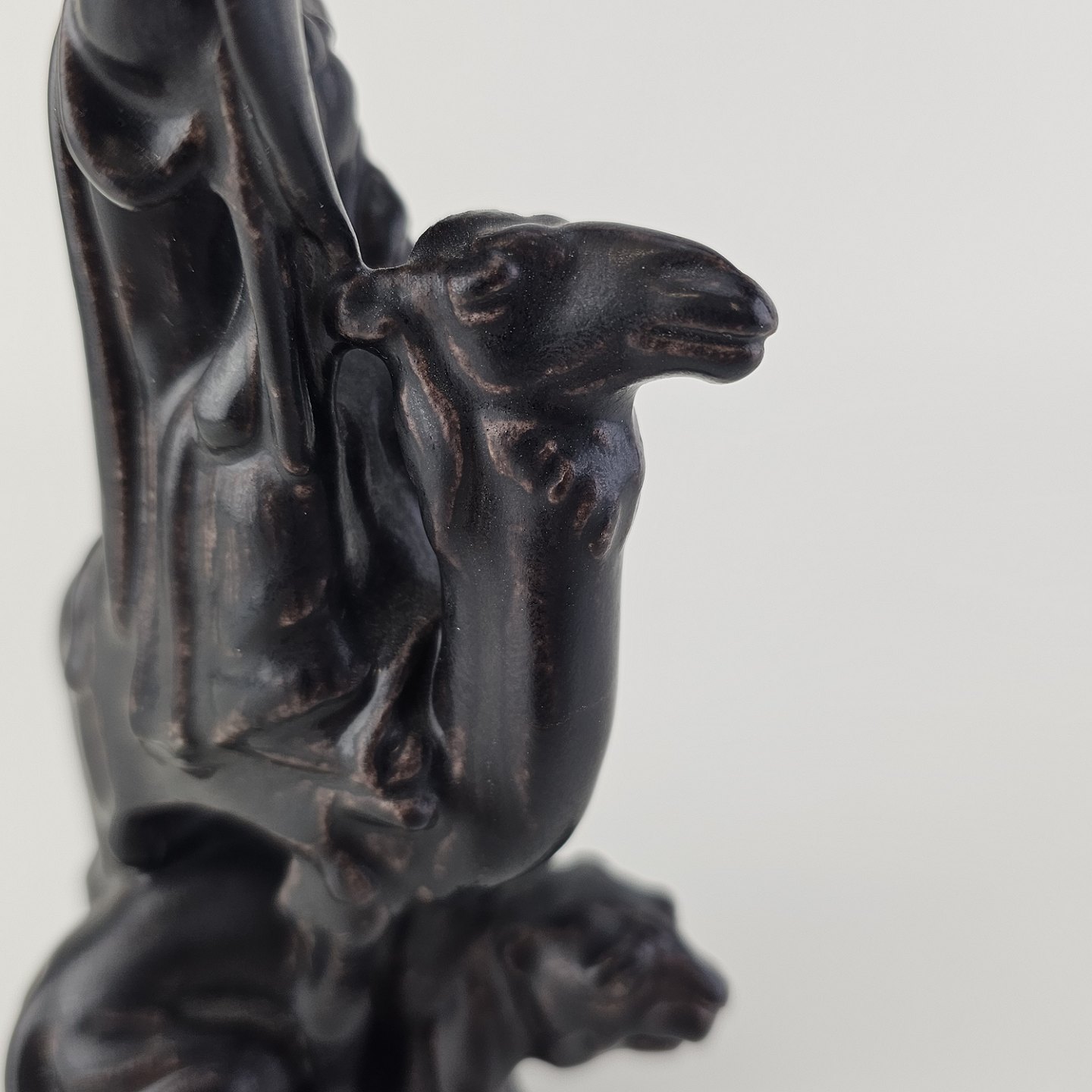 Beskrivelse: Meget sjælden figur i porcelæn fra et sæt skakbrikker med motiver af Richard Løvehjertes tempelriddere og Saladins saracenere. Denne figur er dronningen fra saracenerne og har motiv af en kvinde iklædt slør på en kamel