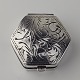 Beskrivelse: Sekskantet pilleæske i sterling sølv med indgraveret bladmotiv