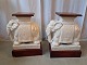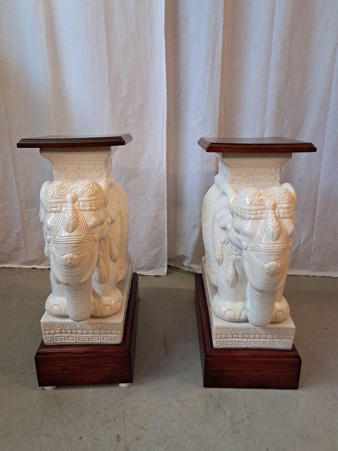 : 2 Pocelæns-elefanter med træsokkel og topplade, fra 2000erne.