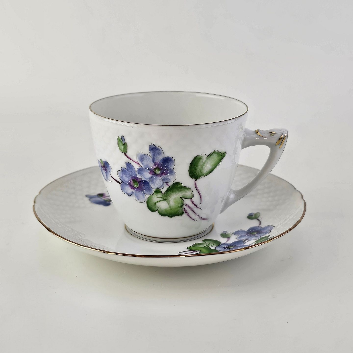 Beskrivelse: Kop med underkop i porcelæn fra stellet Antonius