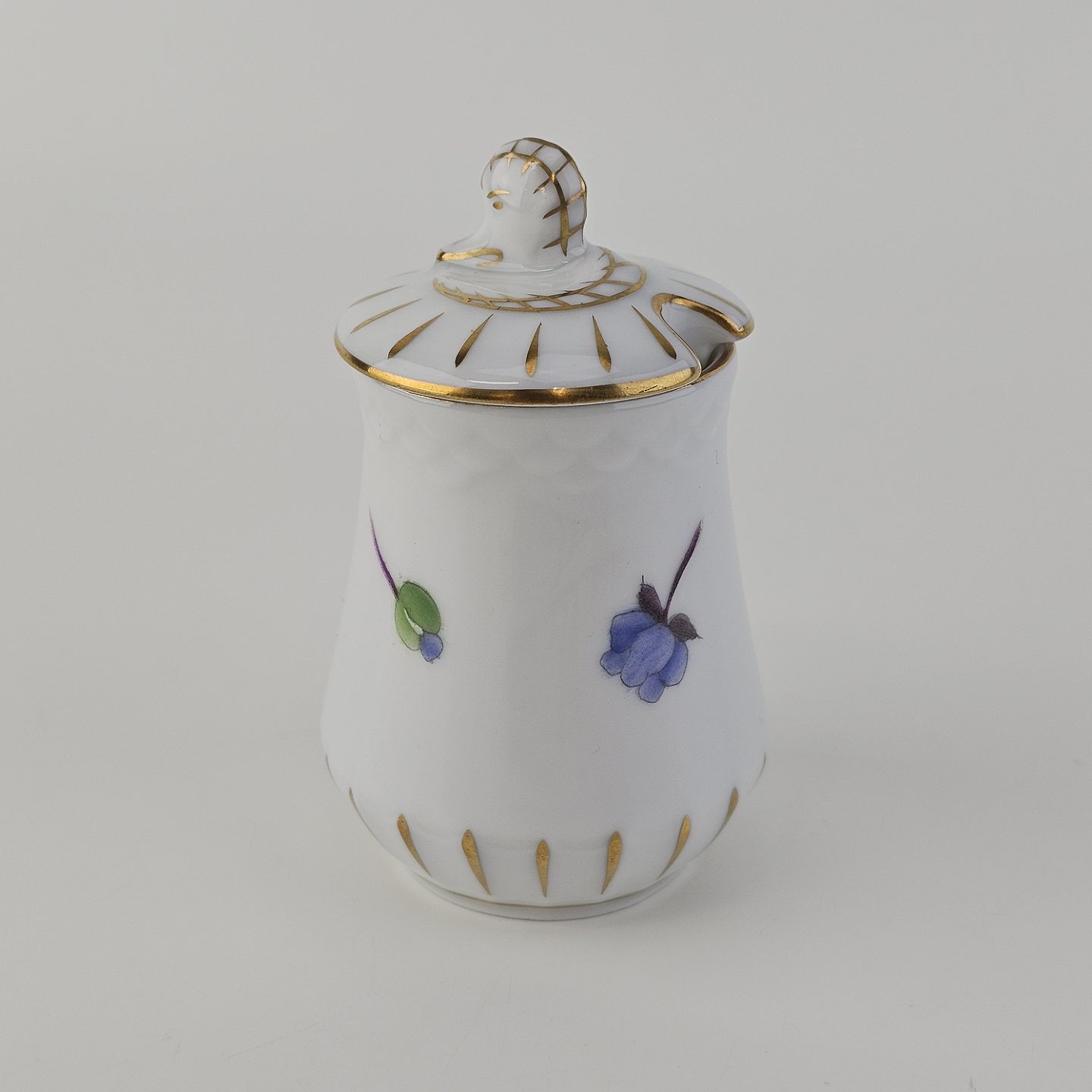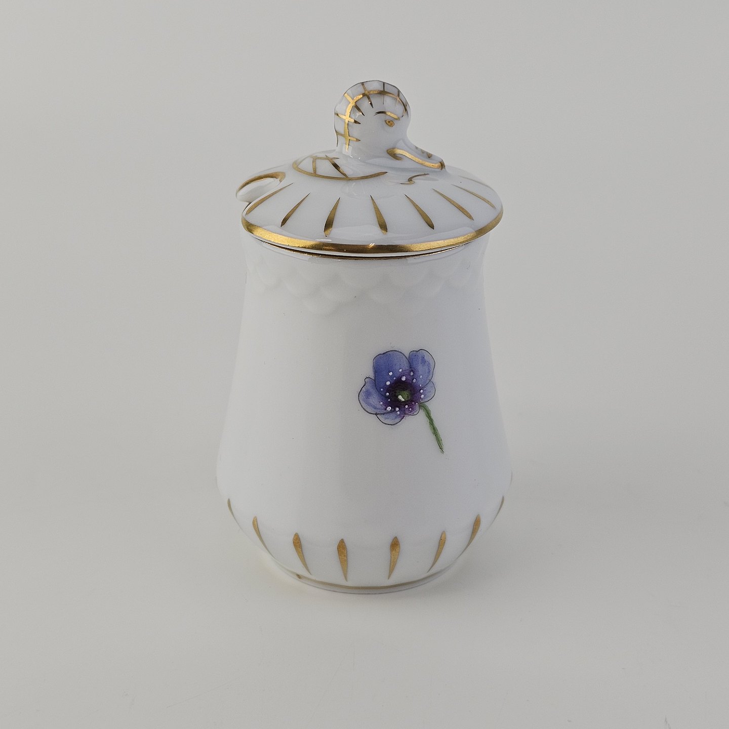 Beskrivelse: Sennepskrukke i porcelæn fra stellet Antonius
